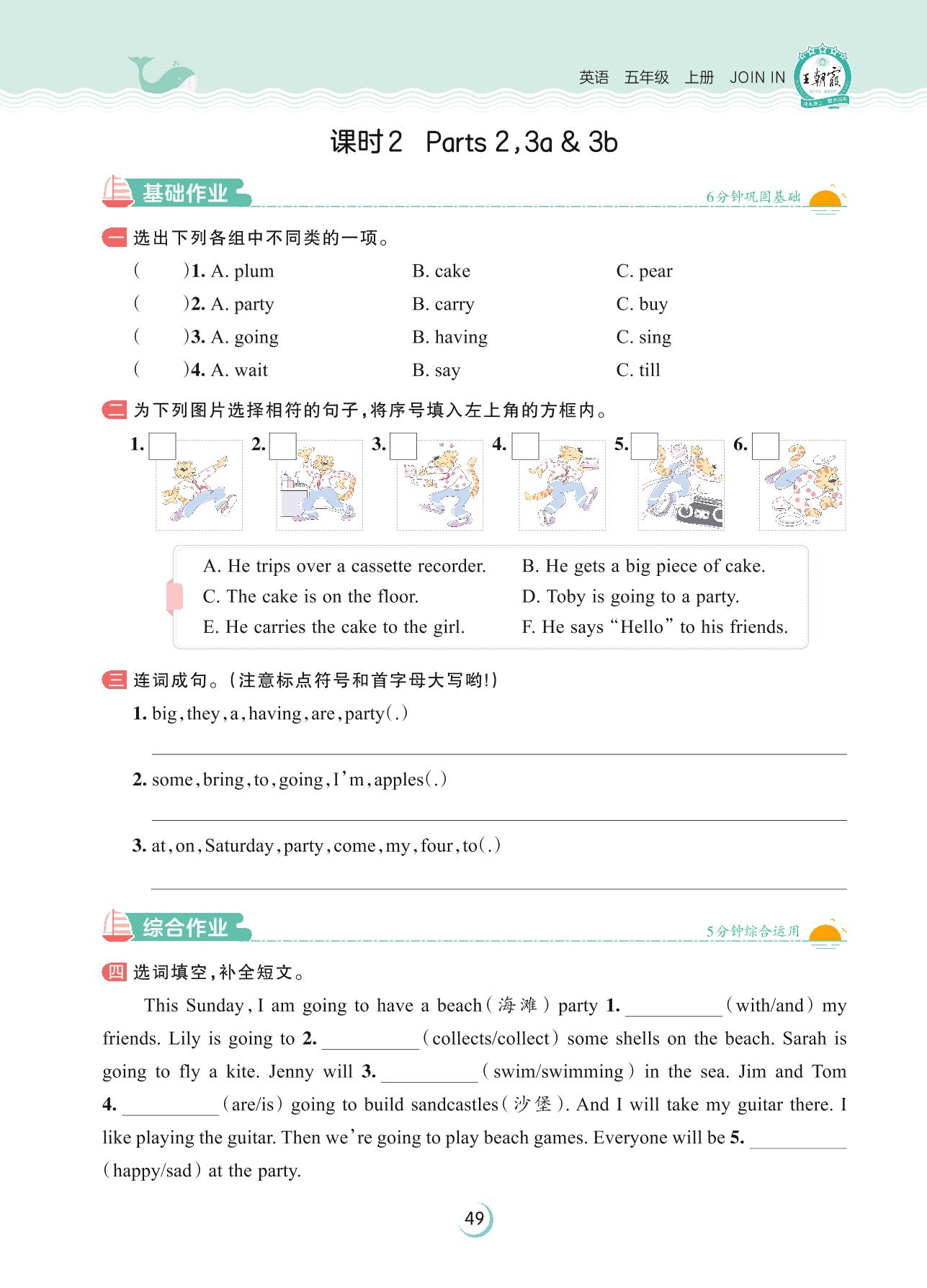 2023上册五年级英语剑桥版 Unit 5—课时 2 Parts 2,3a & 3b