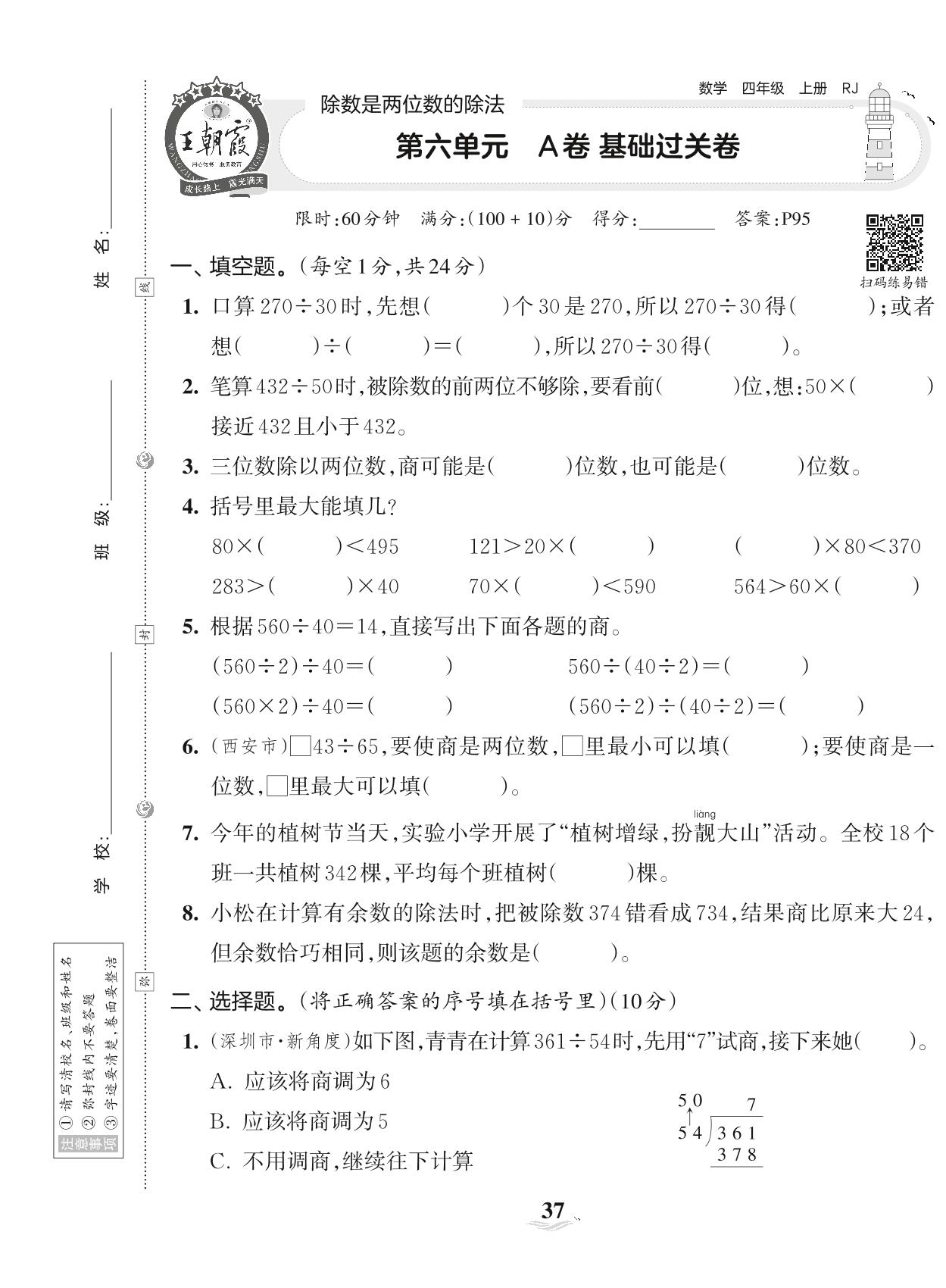 2023上册四年级数学人教版 第六单元 A卷 基础过关卷
