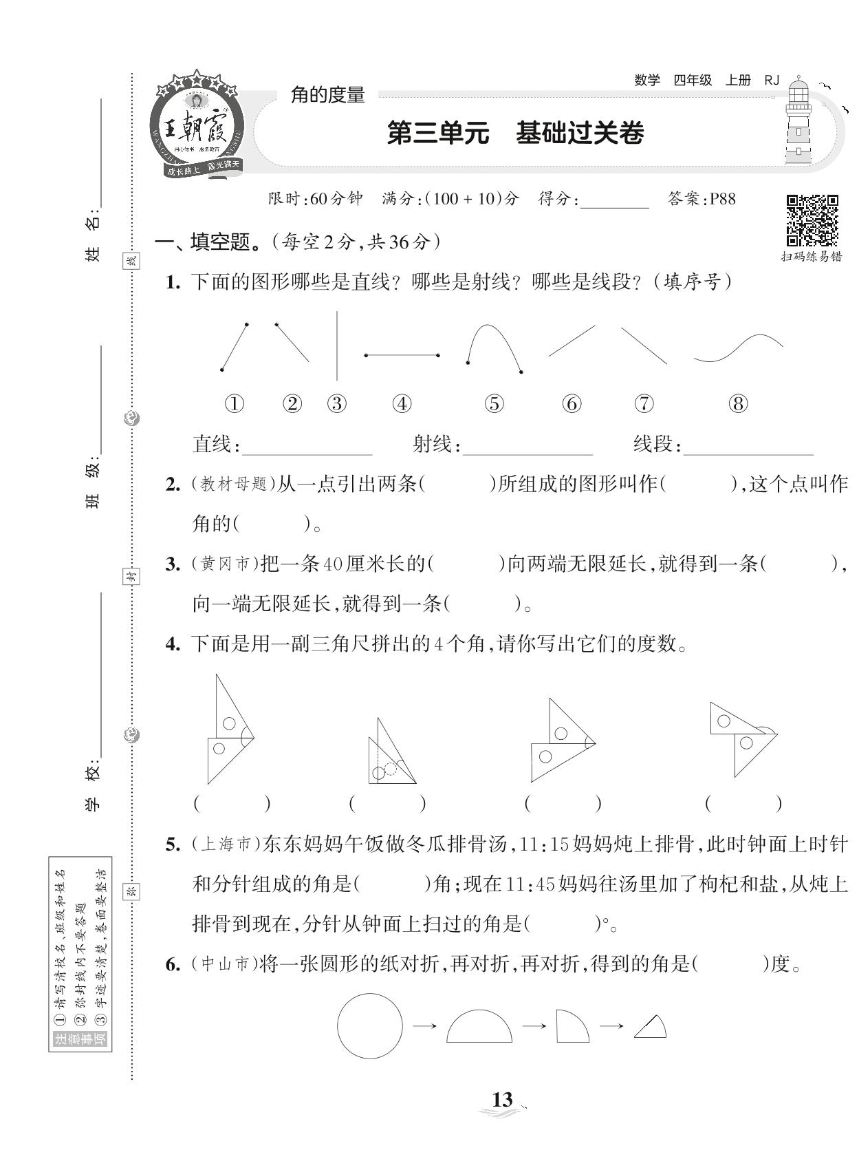 2023上册四年级数学人教版 第三单元 基础过关卷