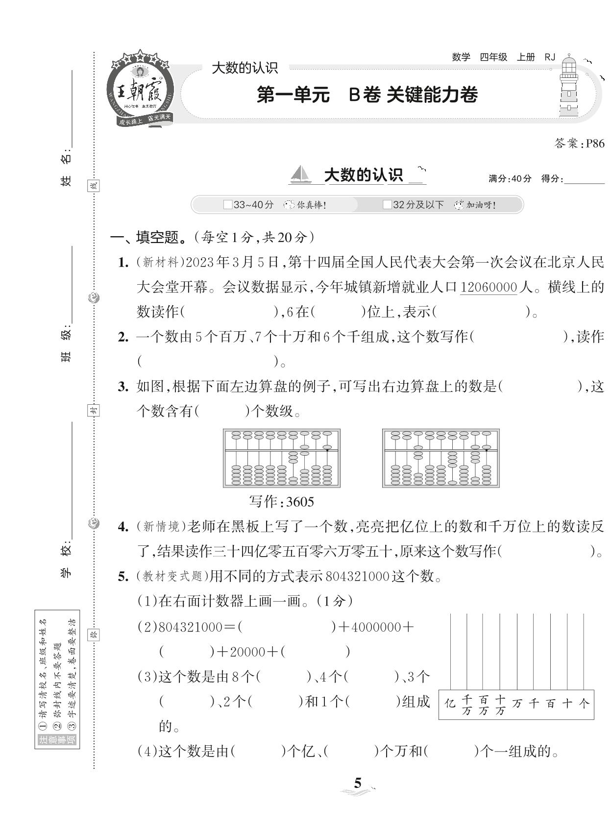 2023上册四年级数学人教版 第一单元 B卷 关键能力卷