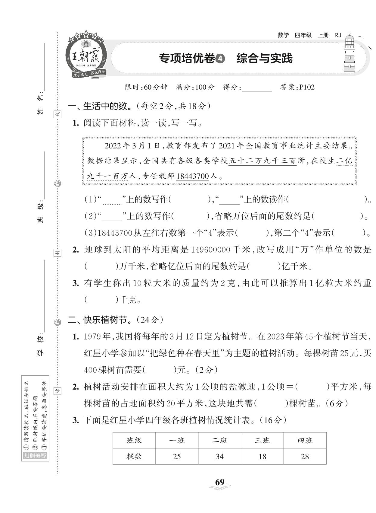 2023上册四年级数学人教版 专项培优卷4 综合与实践