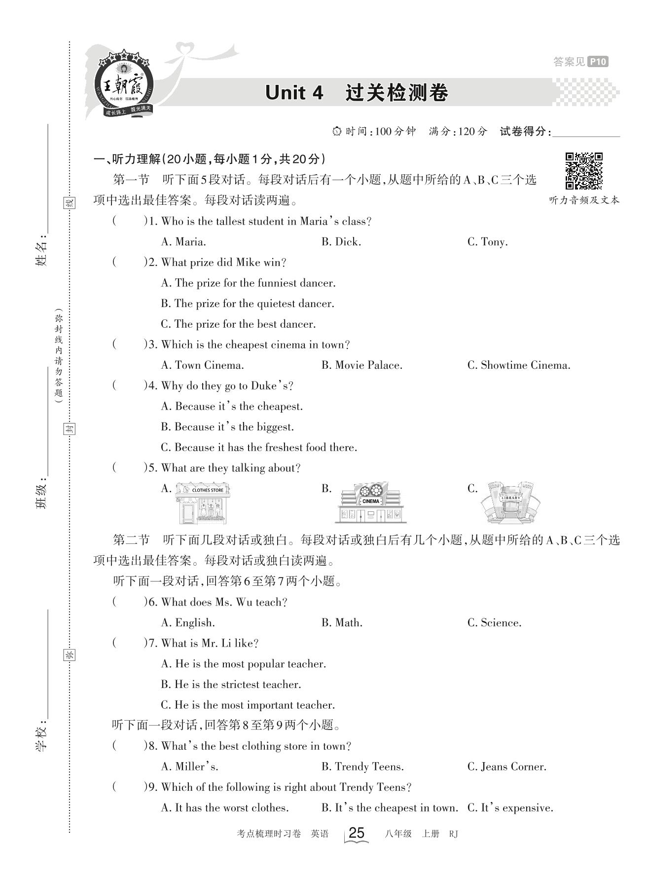 2023上册八年级英语人教版 Unit 4 过关检测卷