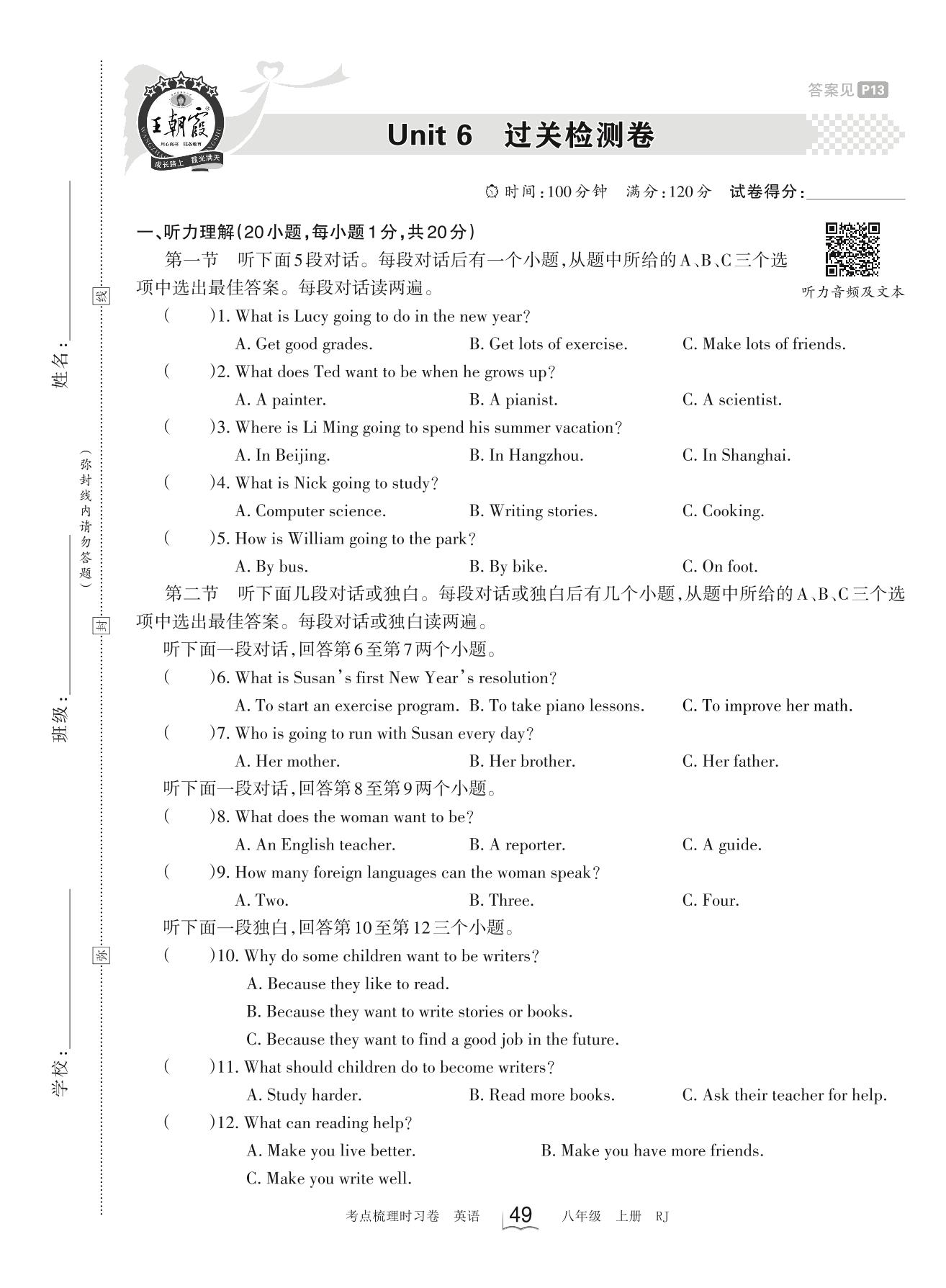 2023上册八年级英语人教版 Unit 6 过关检测卷