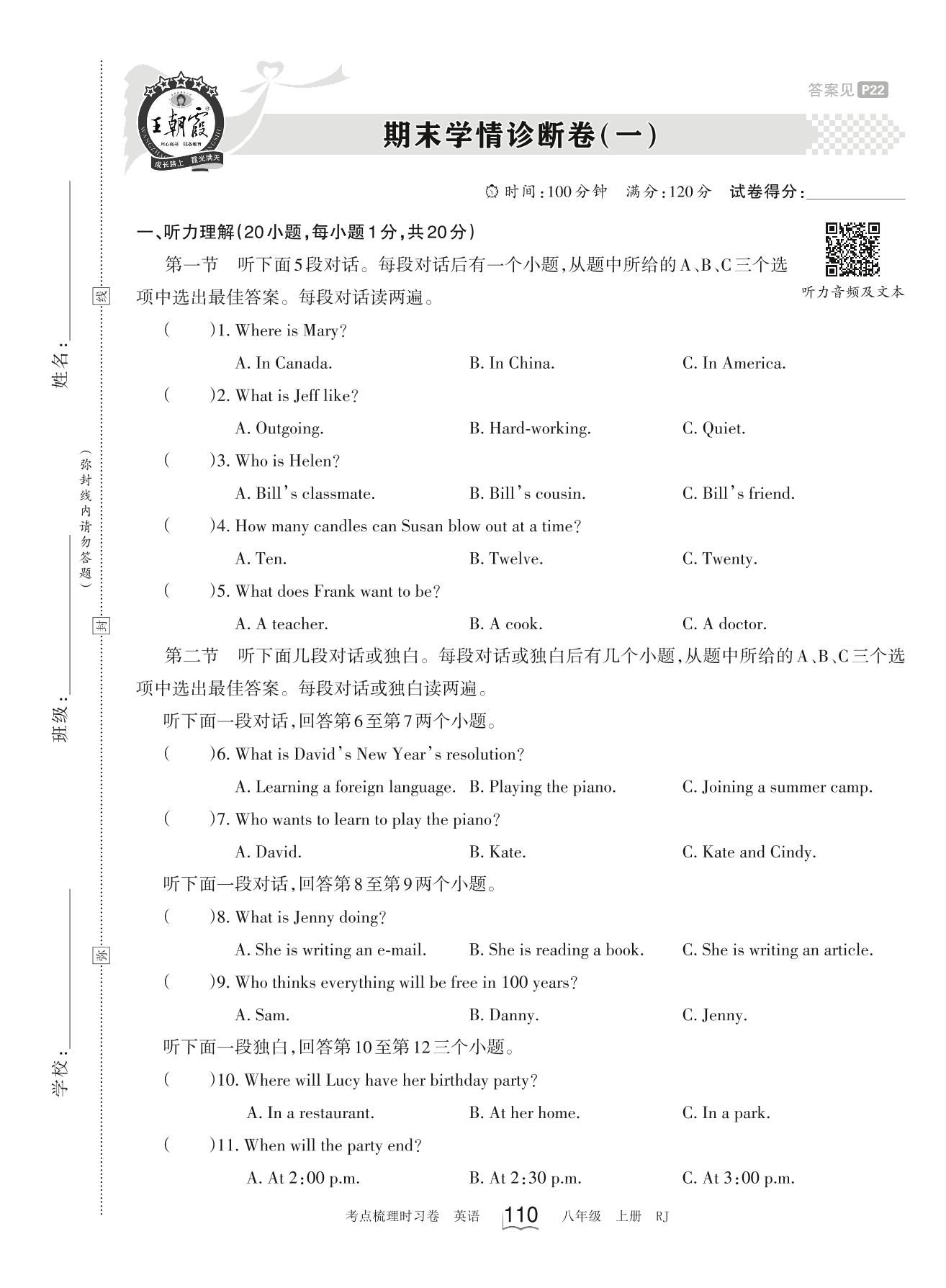 2023上册八年级英语人教版 期末学情诊断卷(一)