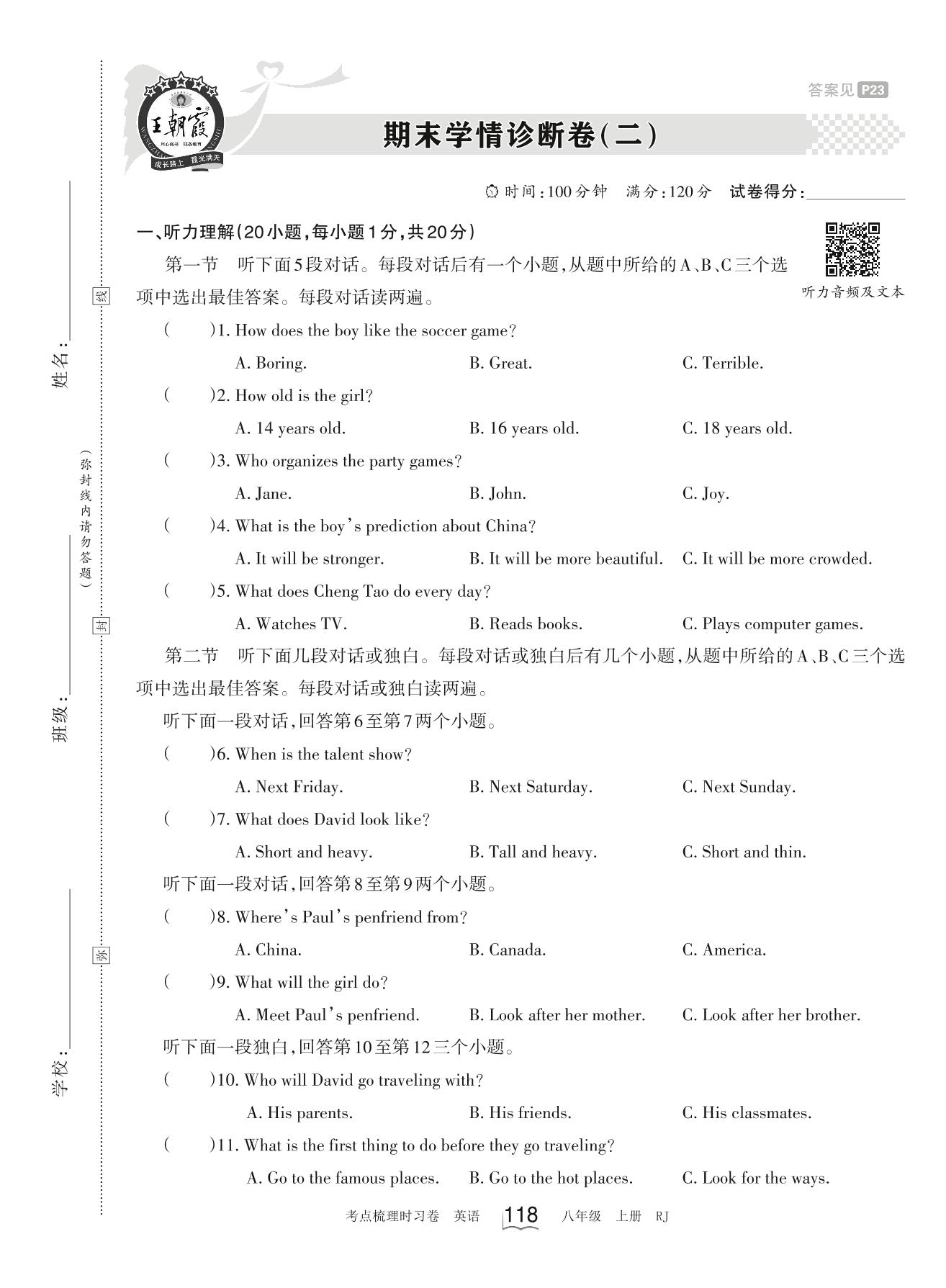 2023上册八年级英语人教版 期末学情诊断卷(二)