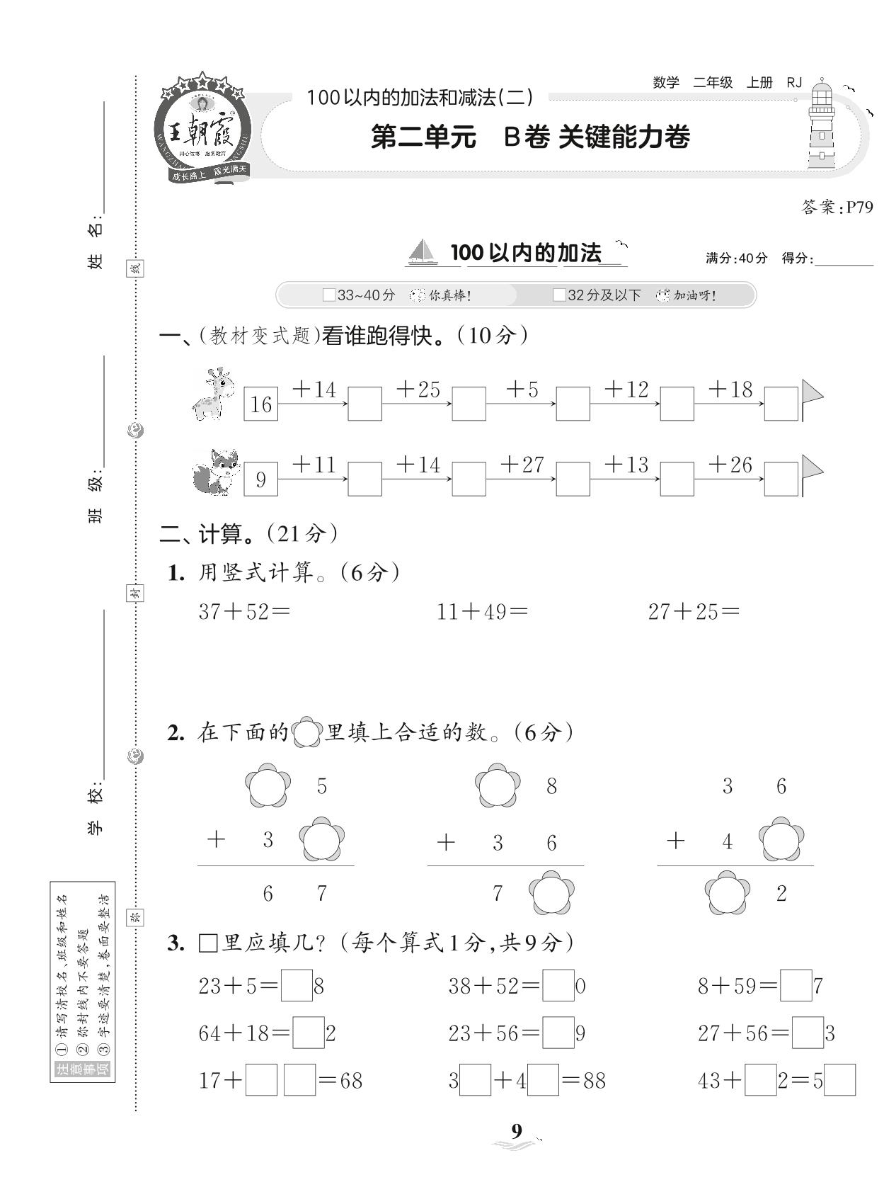 2023上册二年级数学人教版 第二单元 B卷 关键能力卷
