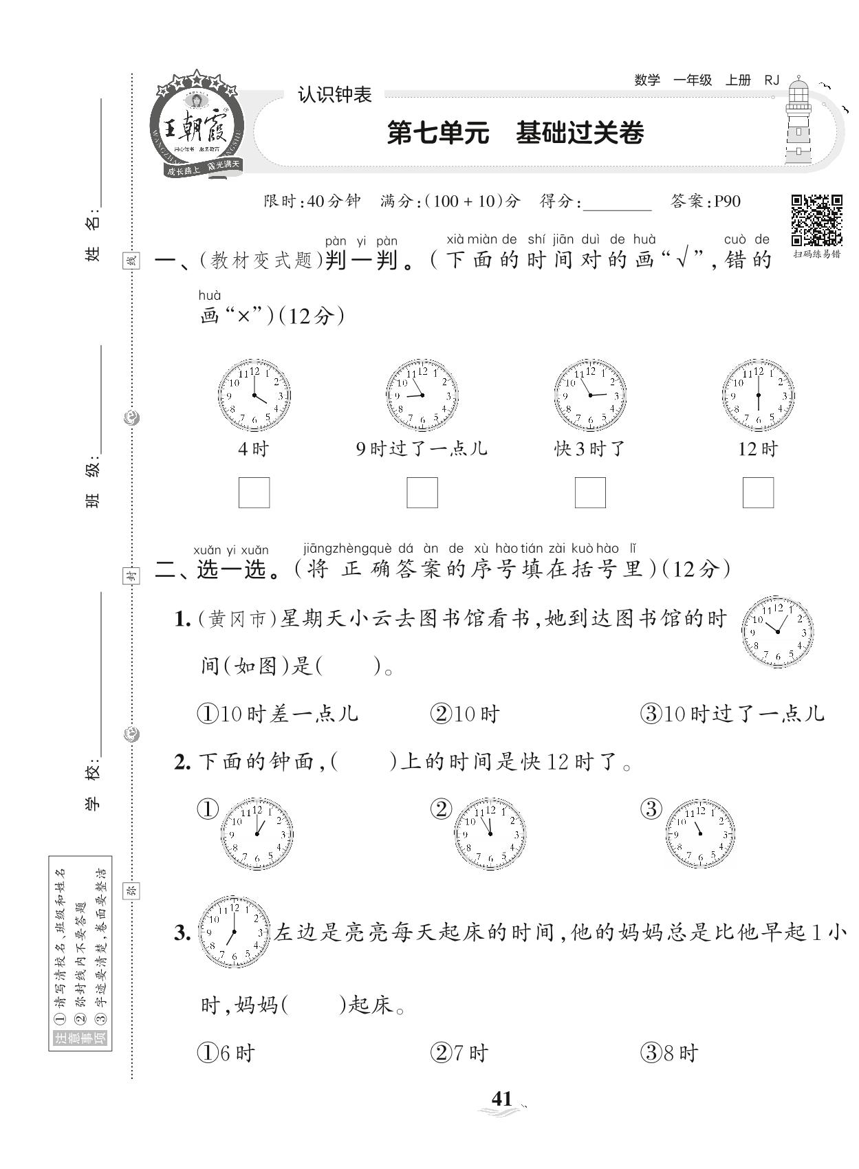2023上册一年级数学人教版 第七单元 基础过关卷