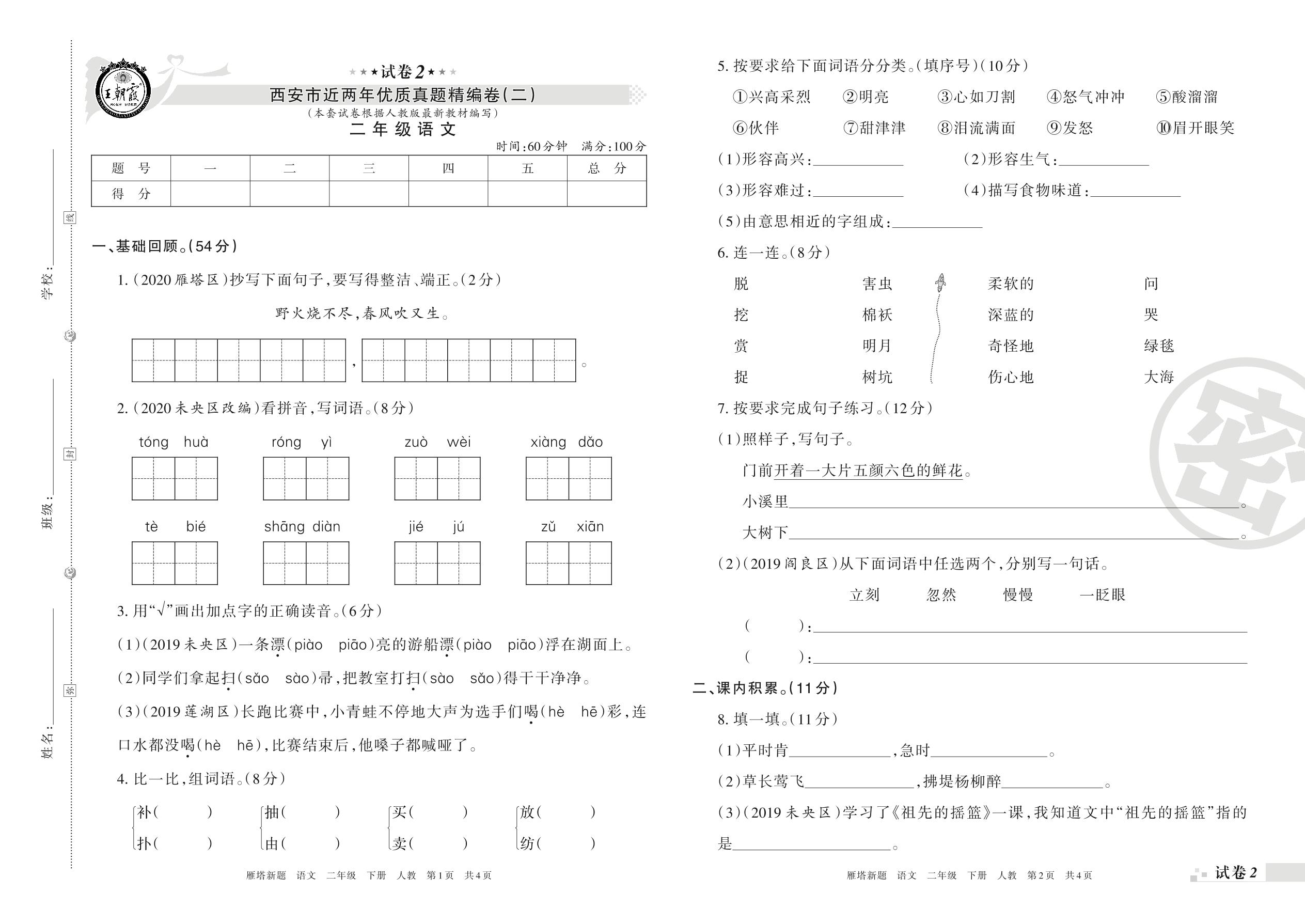 优质试题精编卷(二)二年级下册语文(人教版)【2】
