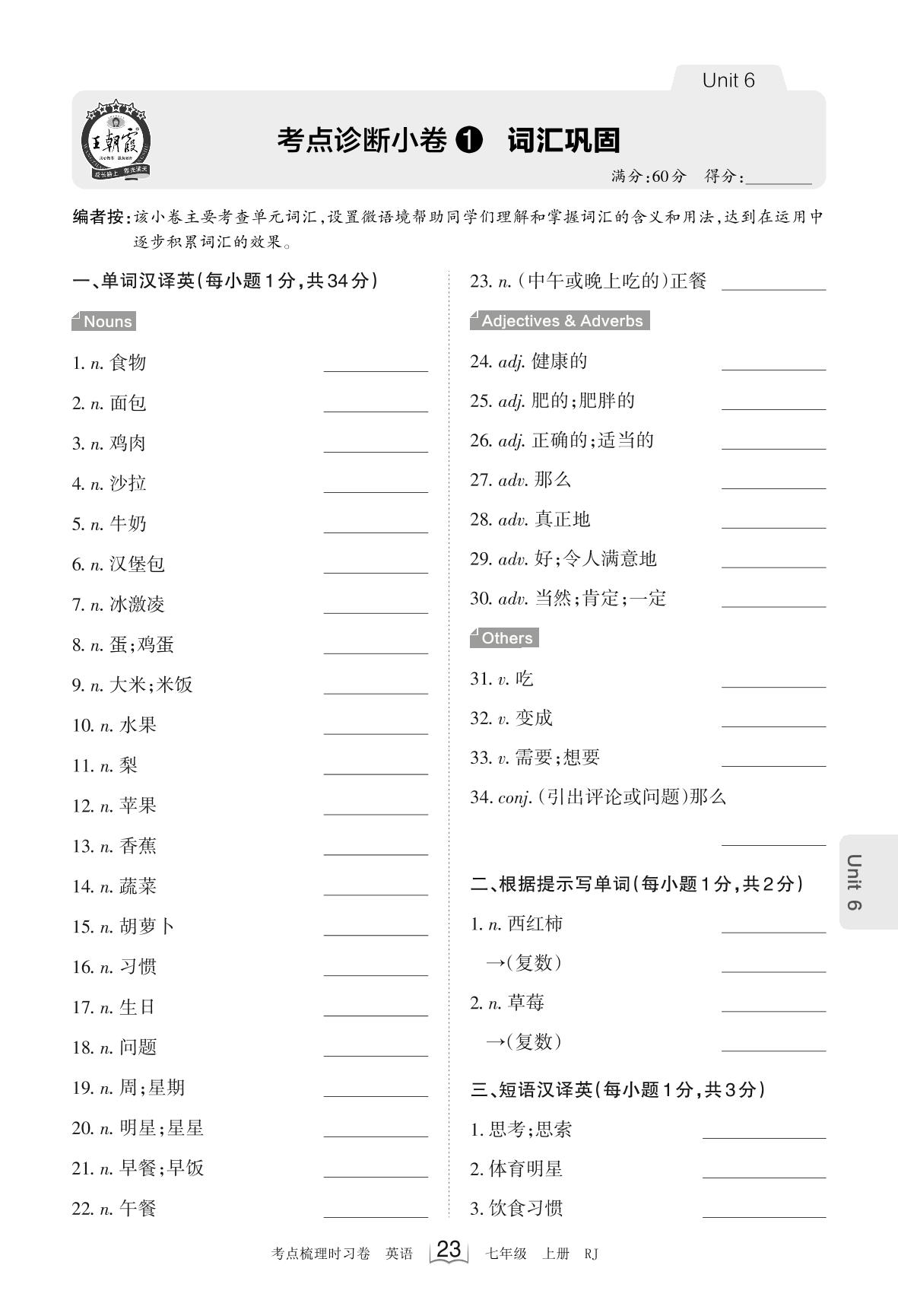 2023上册七年级英语人教版 Unit 6 考点诊断小卷1 词汇巩固