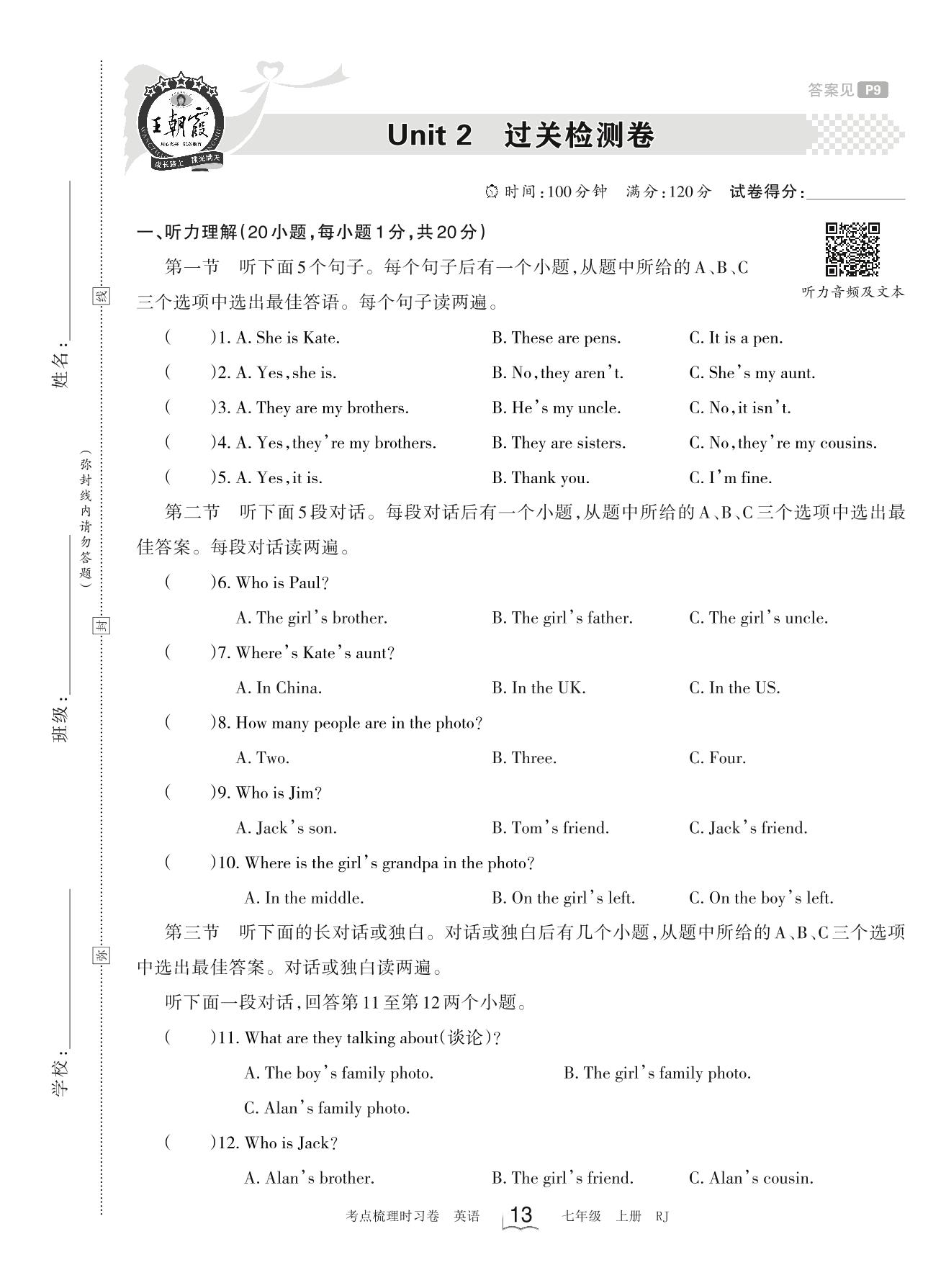 七年级英语人教版上册单元卷
