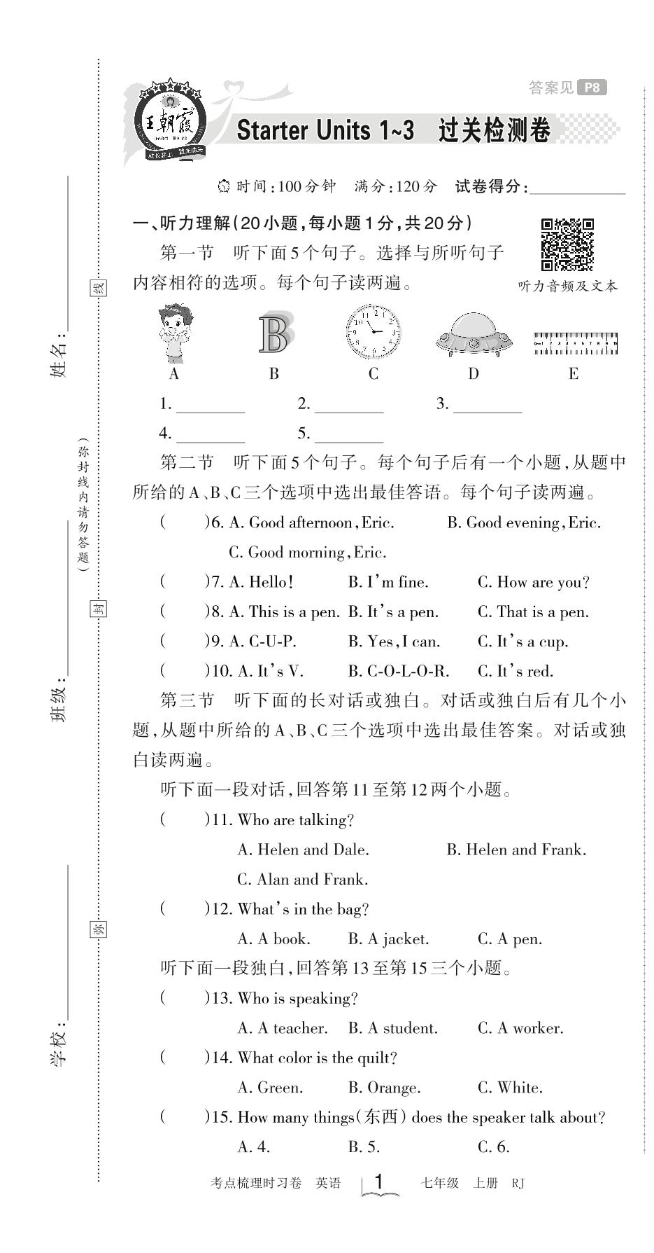 2023上册七年级英语人教版 Starter Units 1~3 过关检测卷
