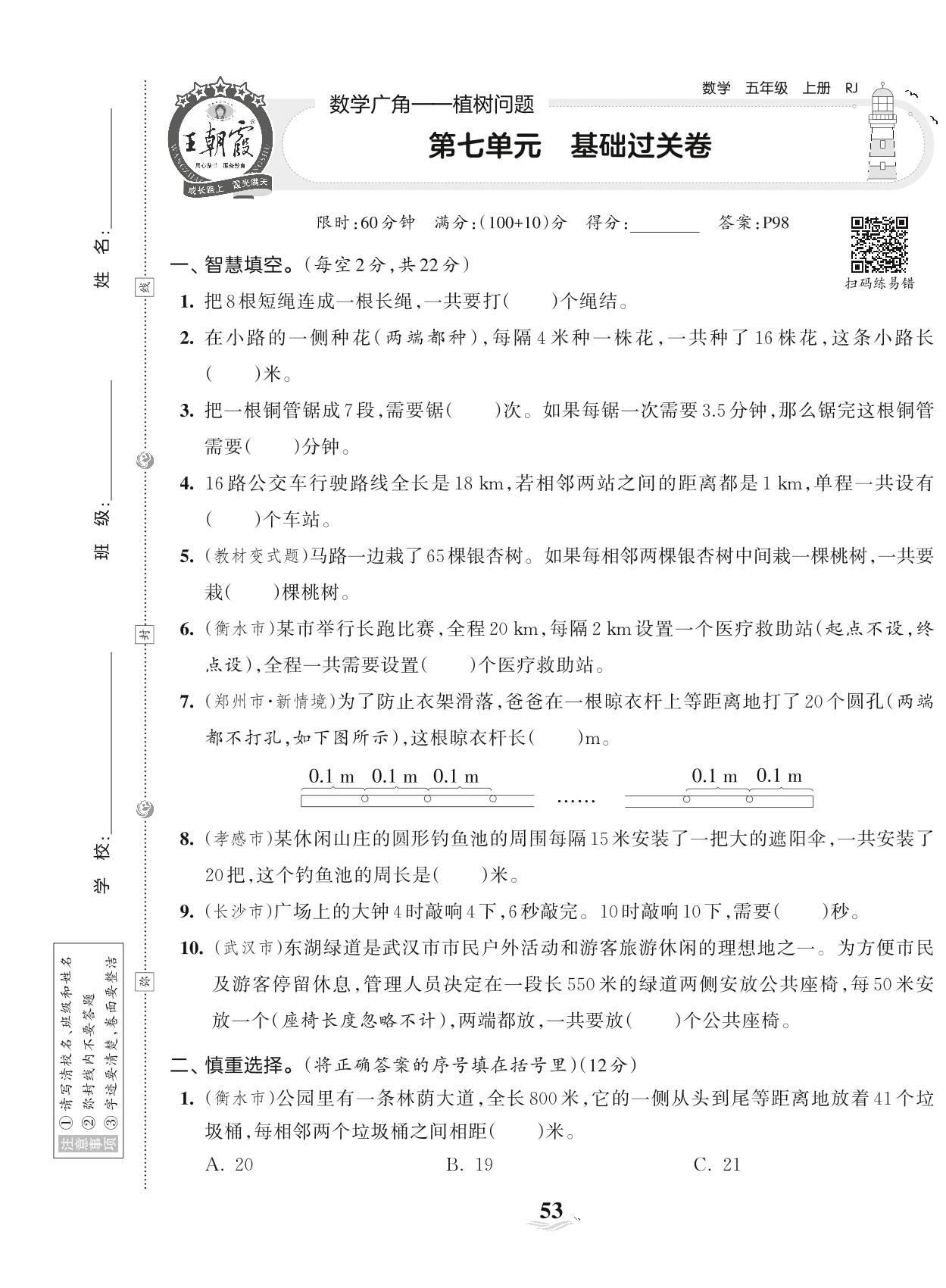 2023上册五年级数学人教版 第七单元 基础过关卷