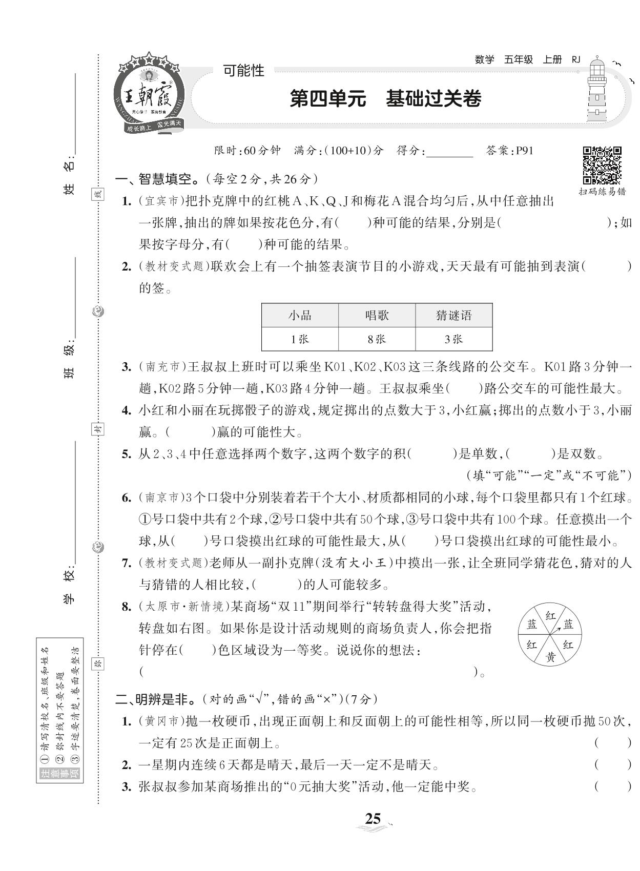 2023上册五年级数学人教版 第四单元 基础过关卷