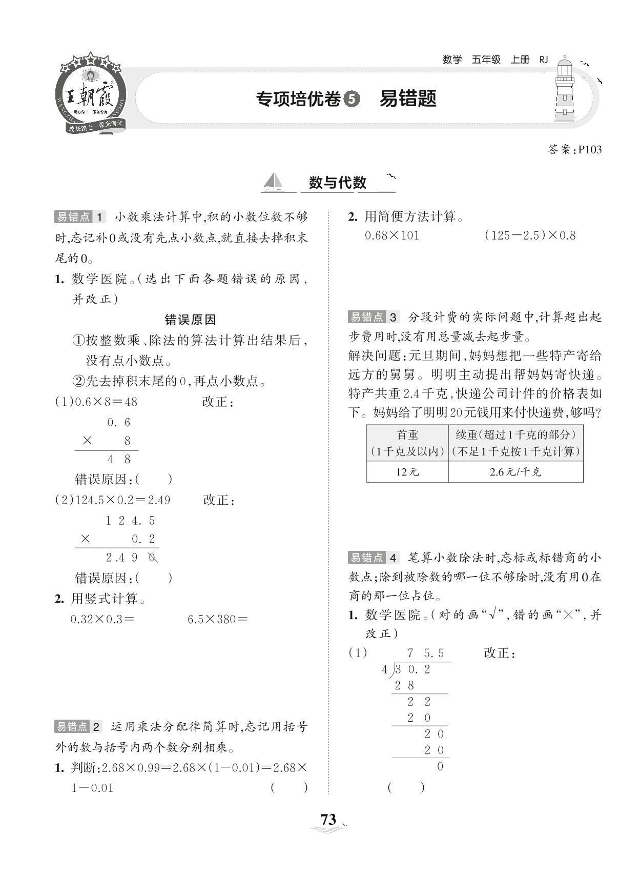 2023上册五年级数学人教版 专项培优卷5 易错题
