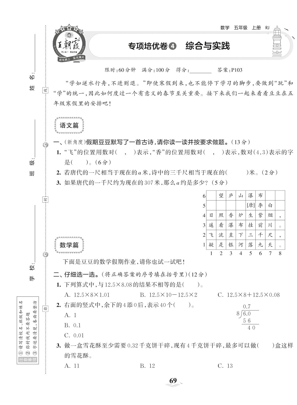 2023上册五年级数学人教版 专项培优卷4 综合应用
