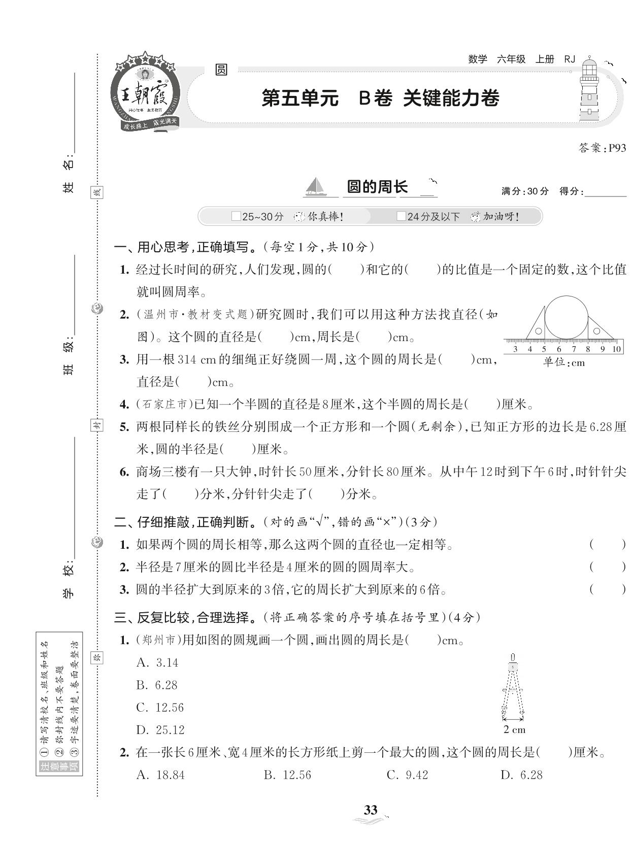 2023上册六年级数学人教版 第五单元 B卷 关键能力卷