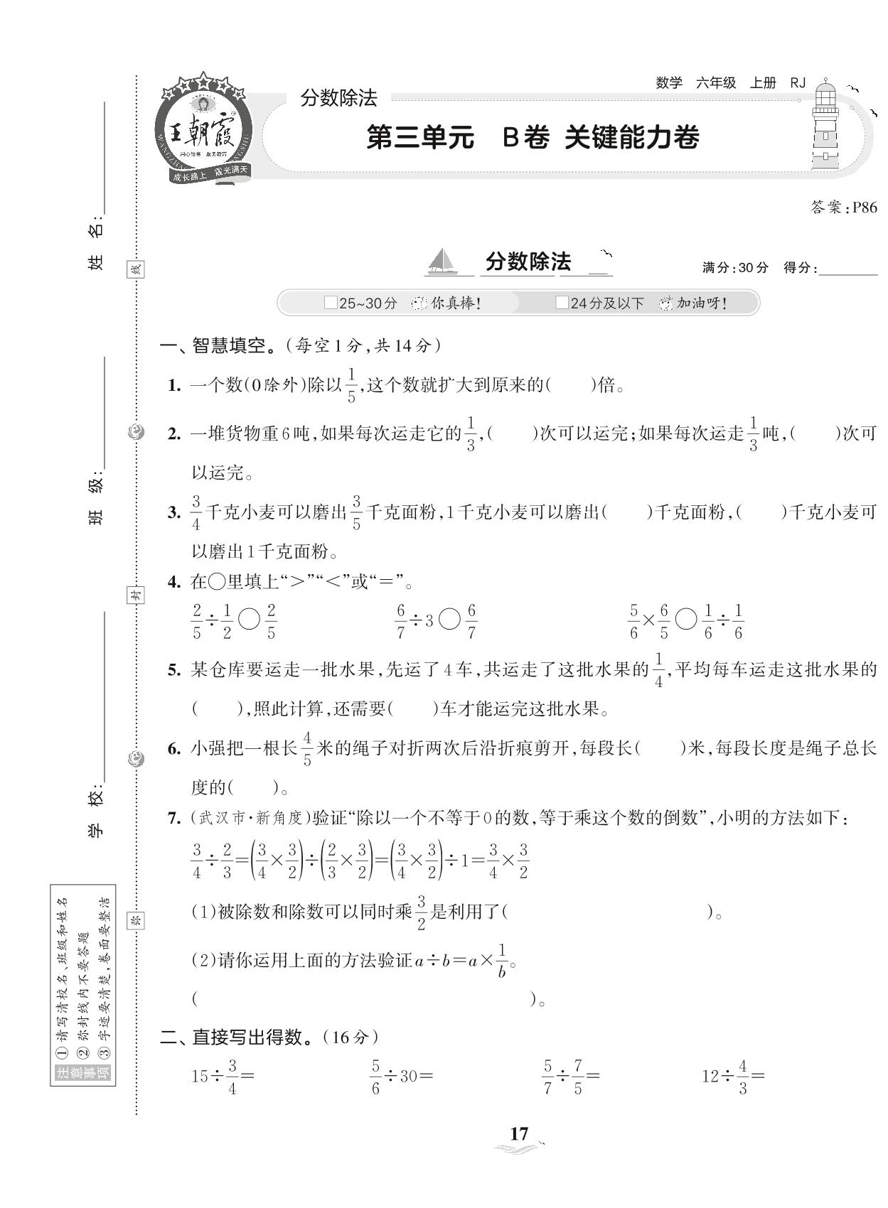 2023上册六年级数学人教版 第三单元 B卷 关键能力卷