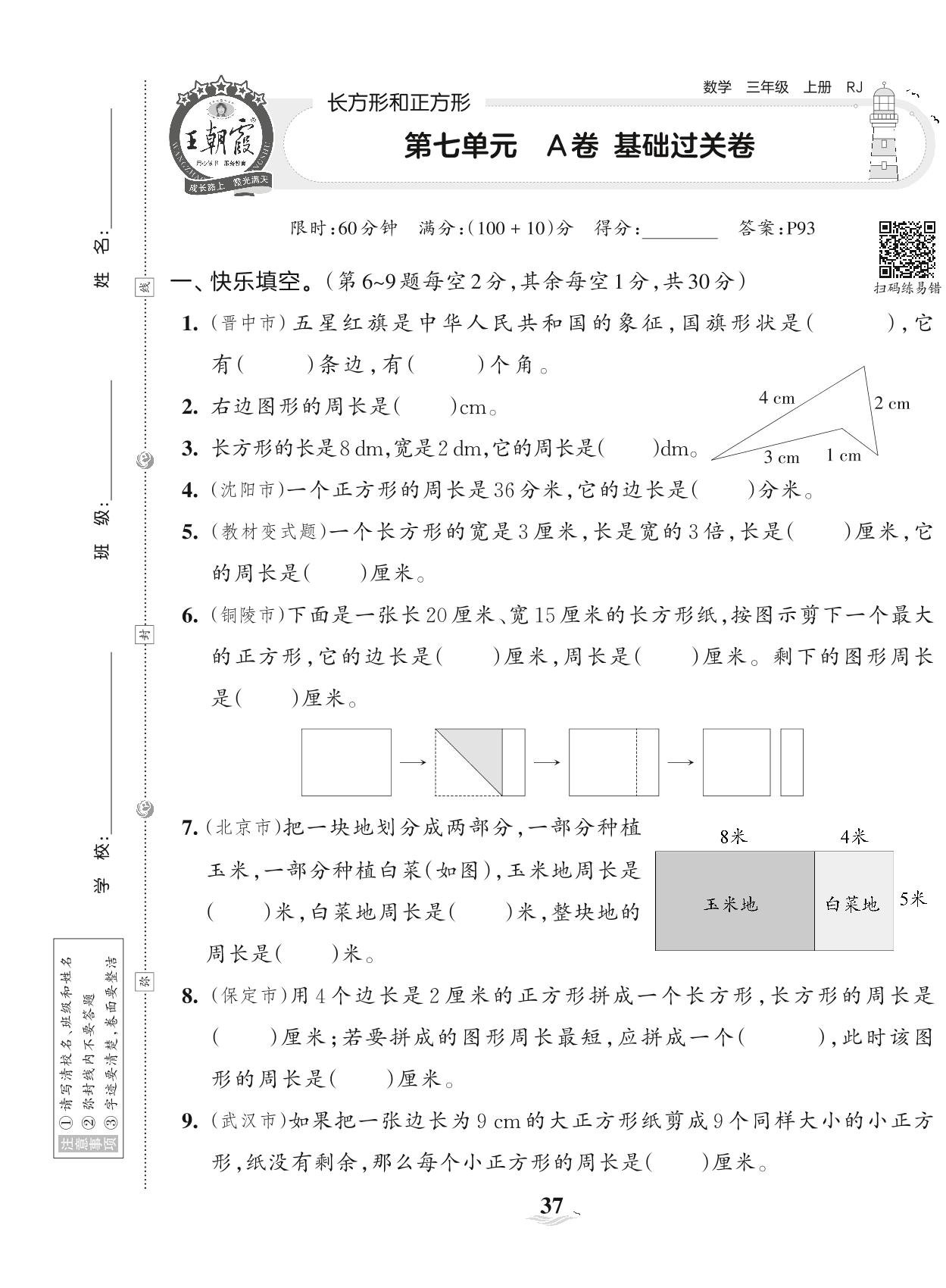 2023上册三年级数学人教版 第七单元 A卷 基础过关卷