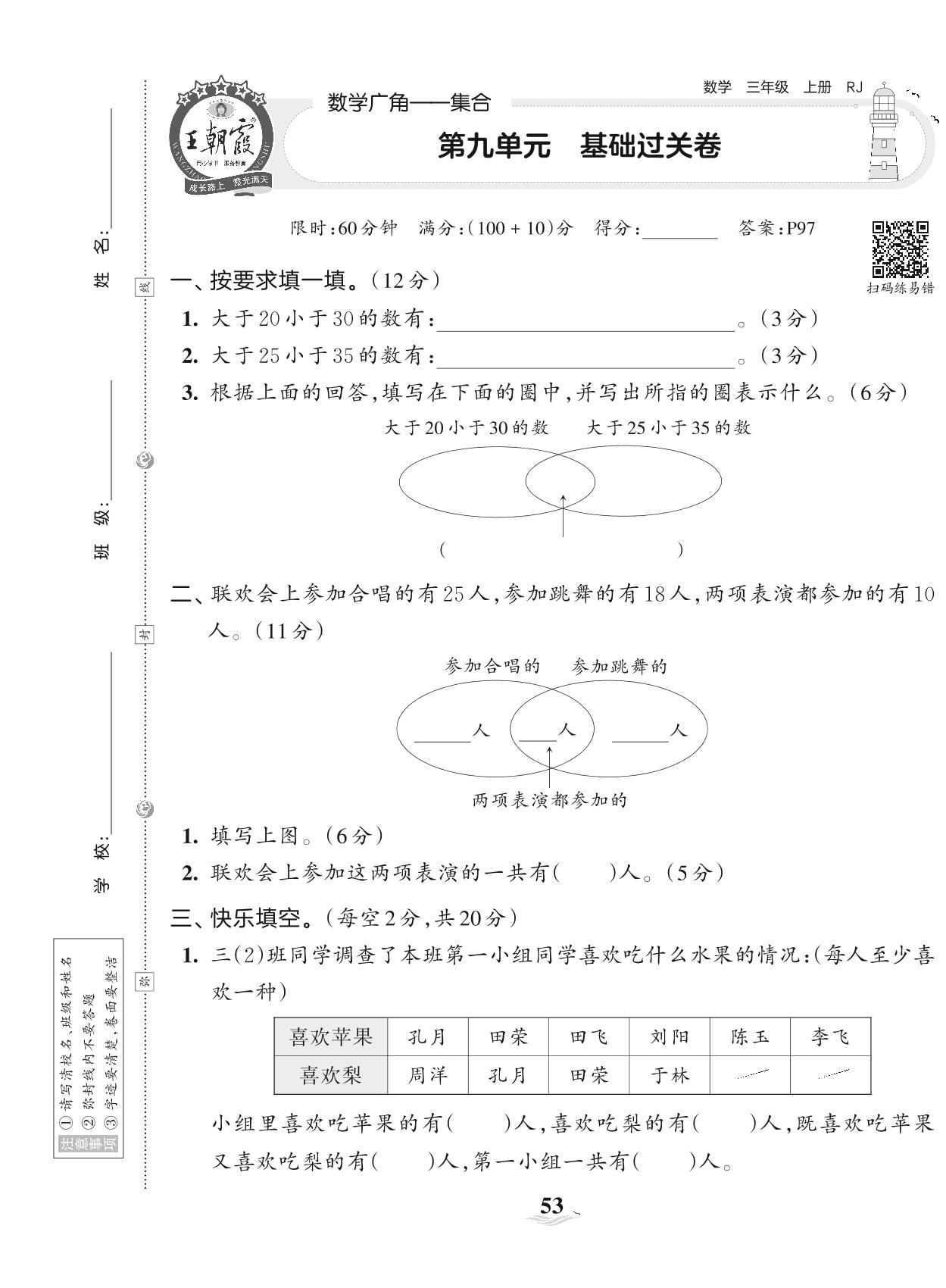 2023上册三年级数学人教版 第九单元 基础过关卷