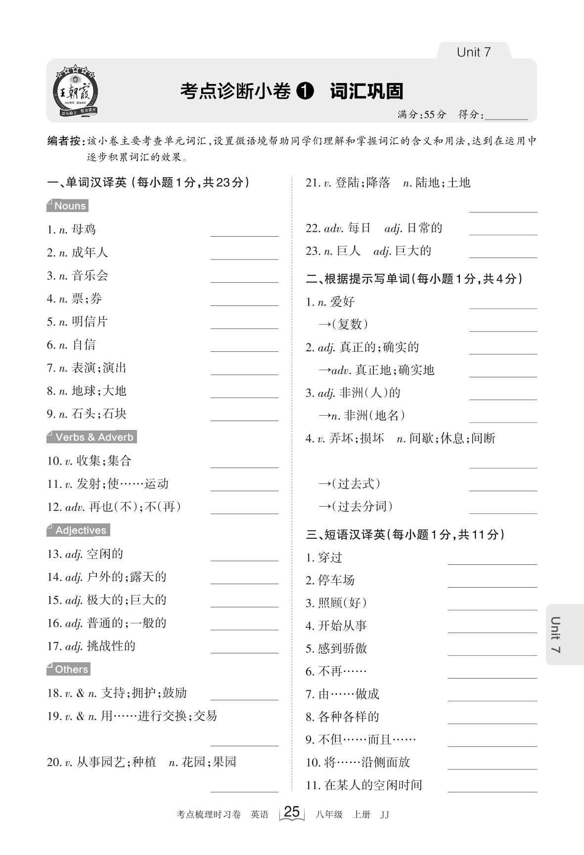 2023上册八年级英语冀教版 Unit 7 考点诊断小卷1 词汇巩固