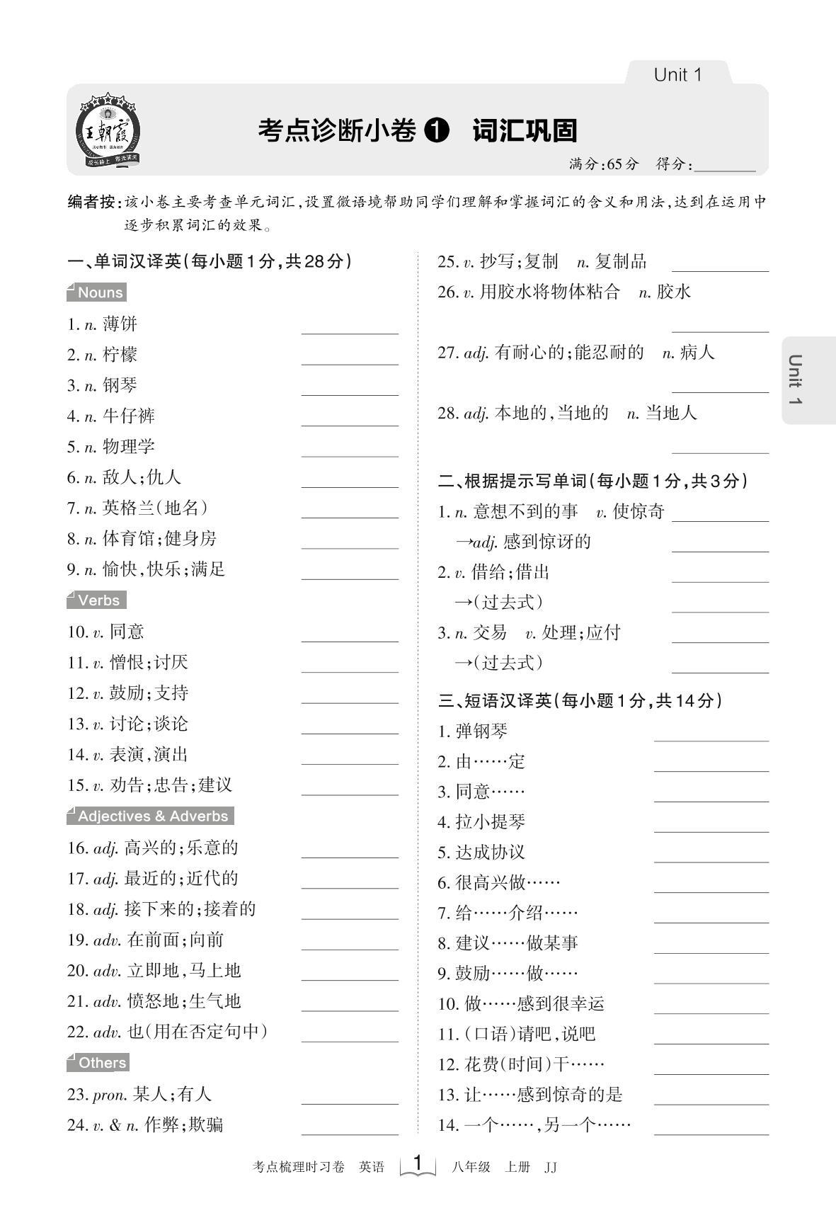 2023上册八年级英语冀教版 Unit 1 考点诊断小卷1 词汇巩固