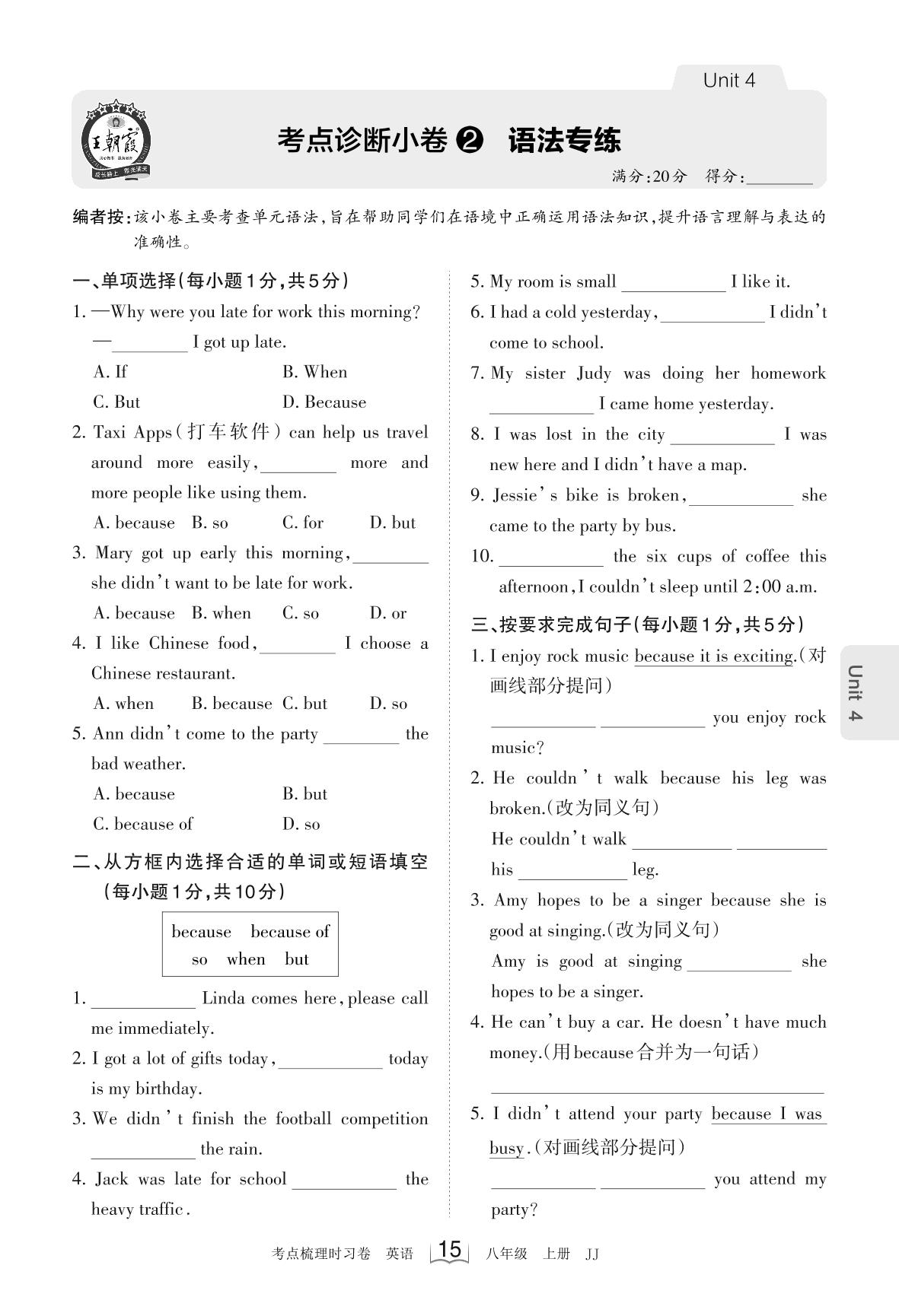 2023上册八年级英语冀教版 Unit 4 考点诊断小卷2 语法专练