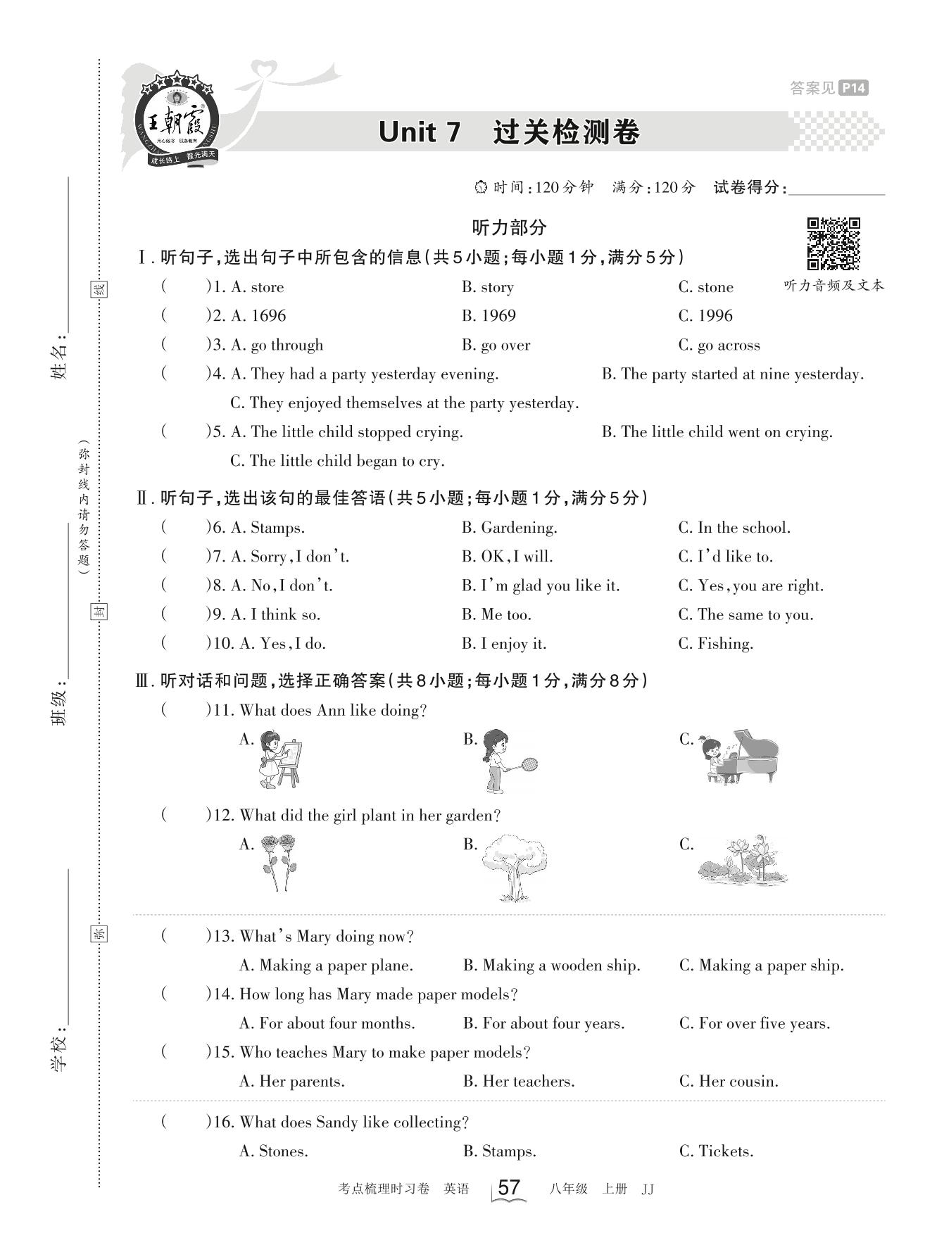 2023上册八年级英语冀教版 Unit 7 过关检测卷