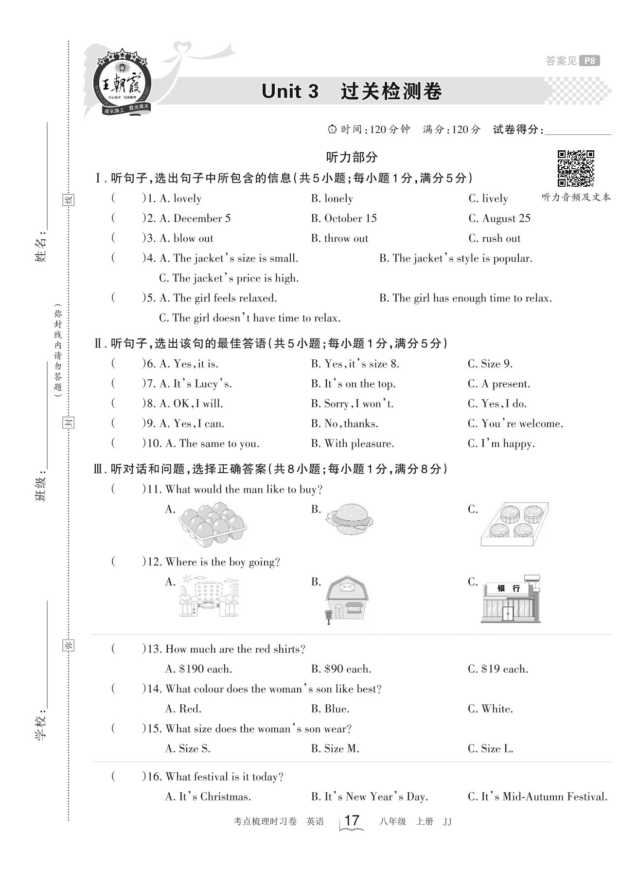 2023上册八年级英语冀教版 Unit 3 过关检测卷