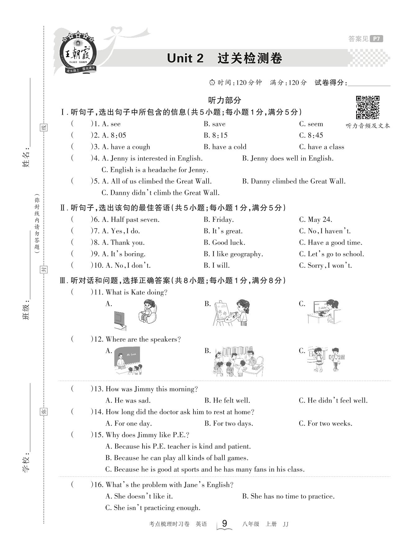 2023上册八年级英语冀教版 Unit 2 过关检测卷