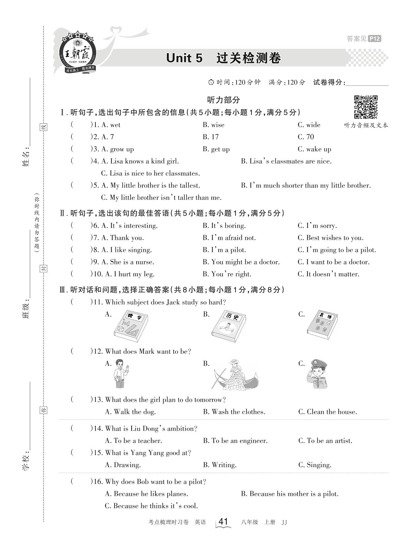 2023上册八年级英语冀教版 Unit 5 过关检测卷