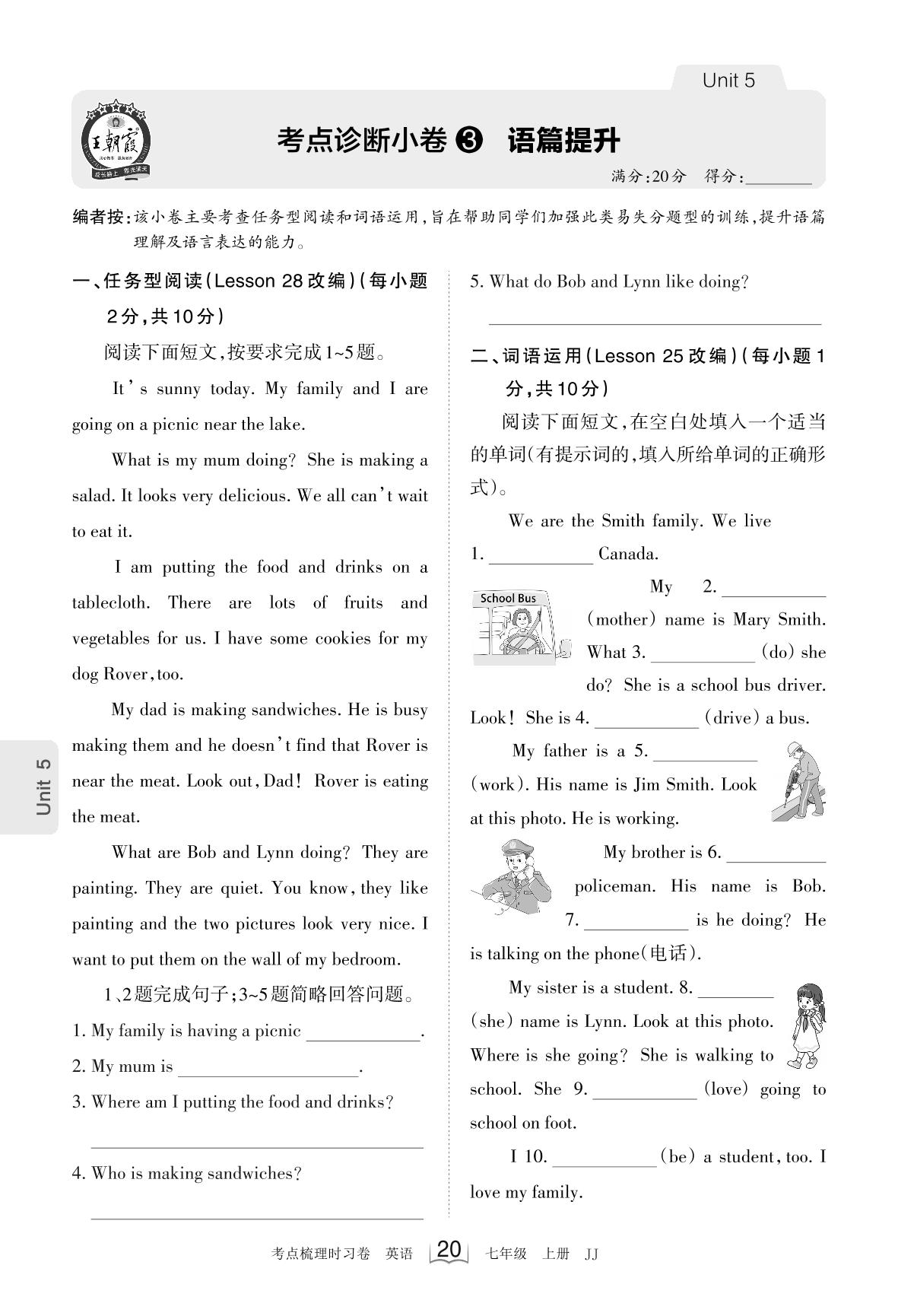2023上册七年级英语冀教版 Unit 5 考点诊断小卷3 语篇提升