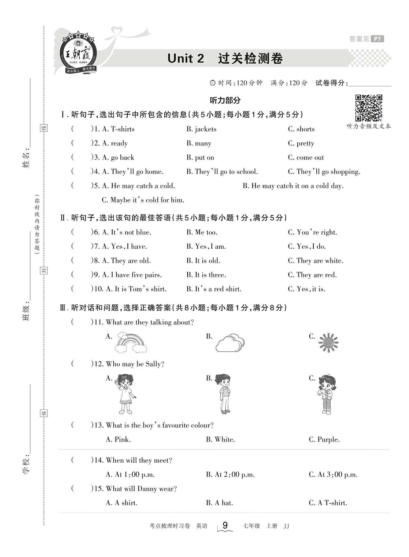 2023上册七年级英语冀教版 Unit 2 过关检测卷