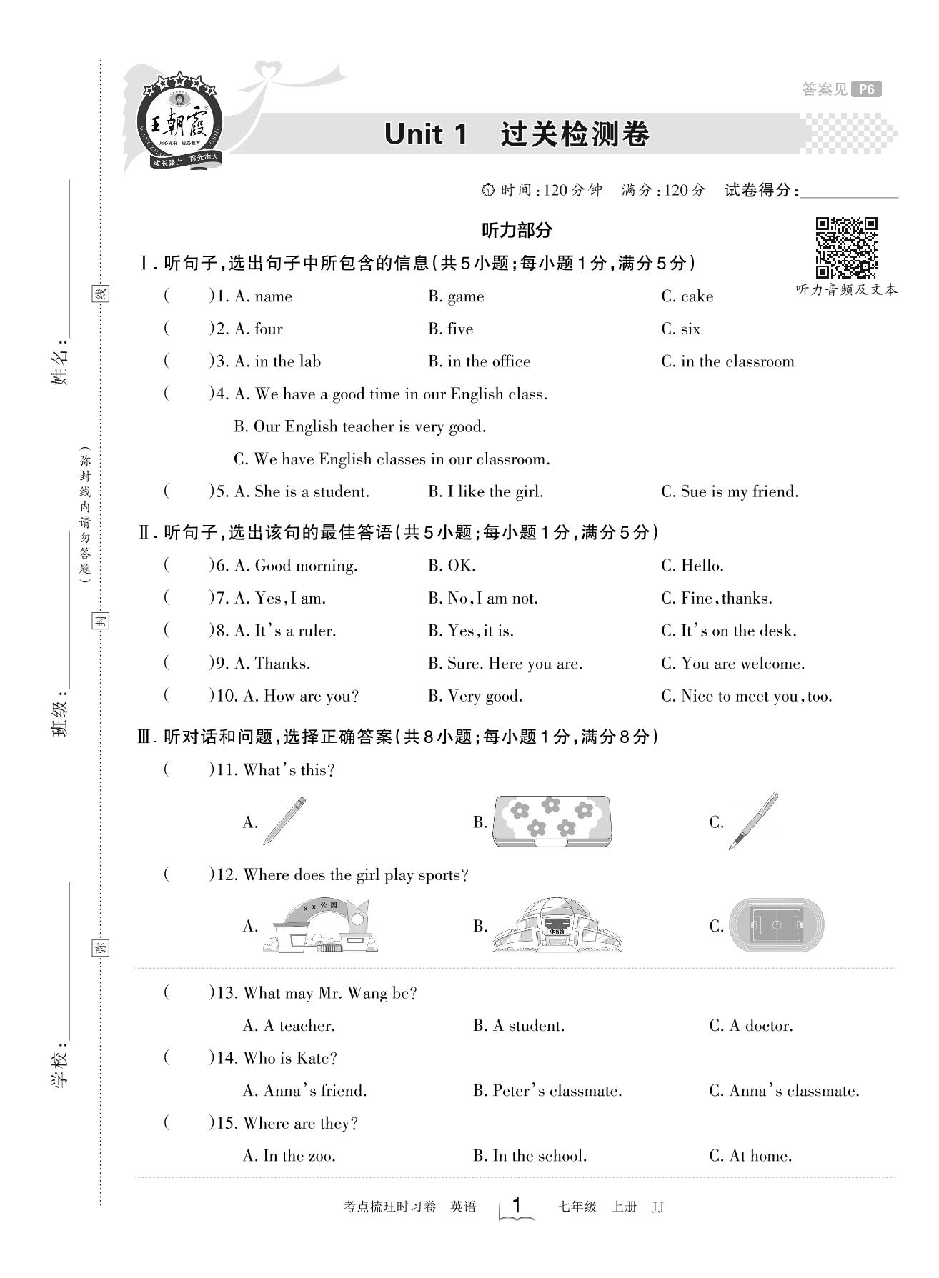 2023上册七年级英语冀教版 Unit 1 过关检测卷
