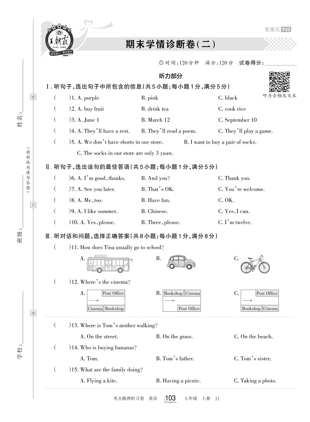 2023上册七年级英语冀教版 期末学情诊断卷(二)