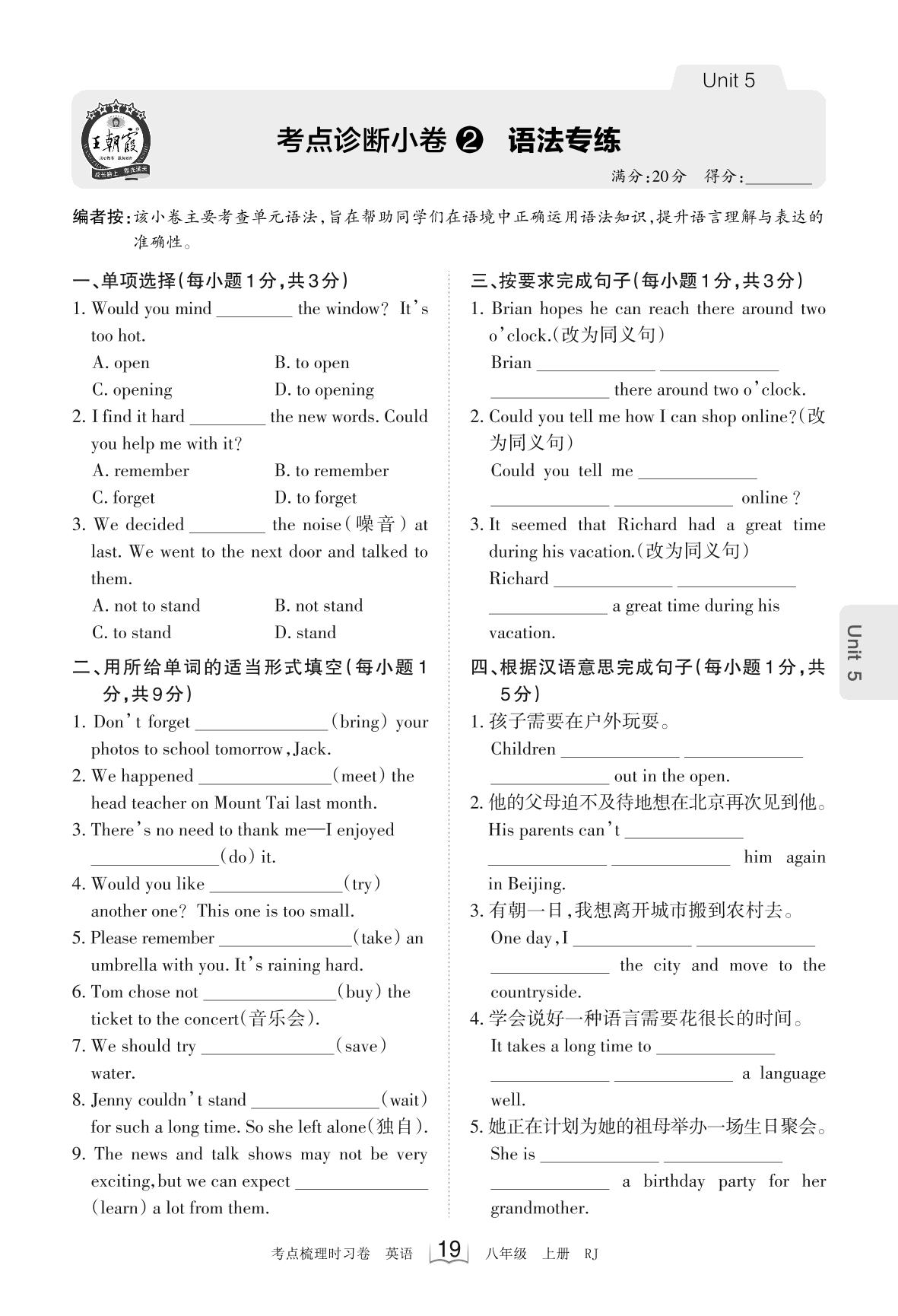 2023上册八年级英语人教版 Unit 5 考点诊断小卷2 语法专练_R230828152833886
