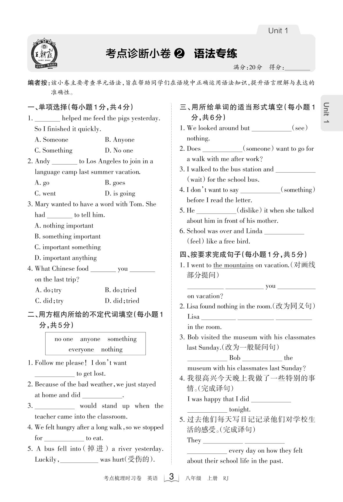 2023上册八年级英语人教版 Unit 1 考点诊断小卷2 语法专练_R230828152834157