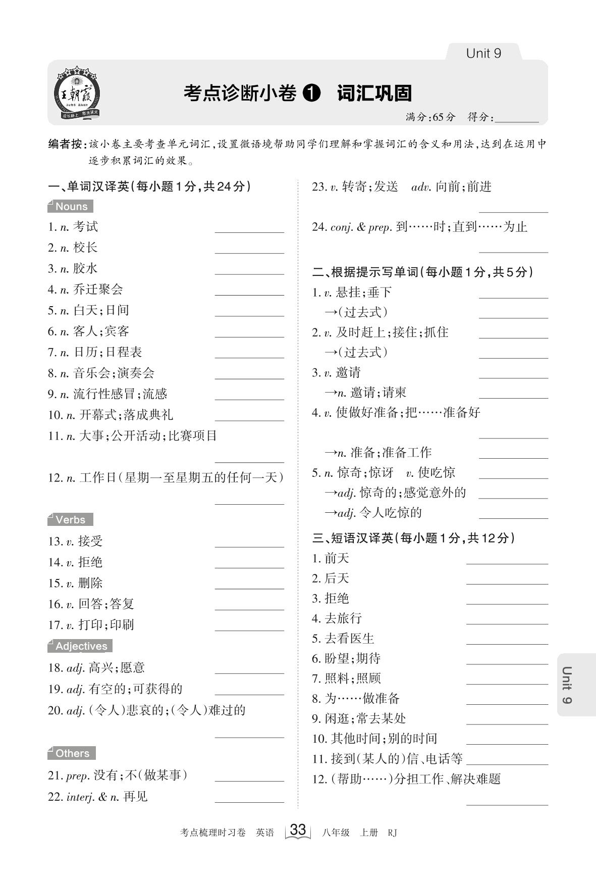 2023上册八年级英语人教版 Unit 9 考点诊断小卷1 词汇巩固_R230828152835372