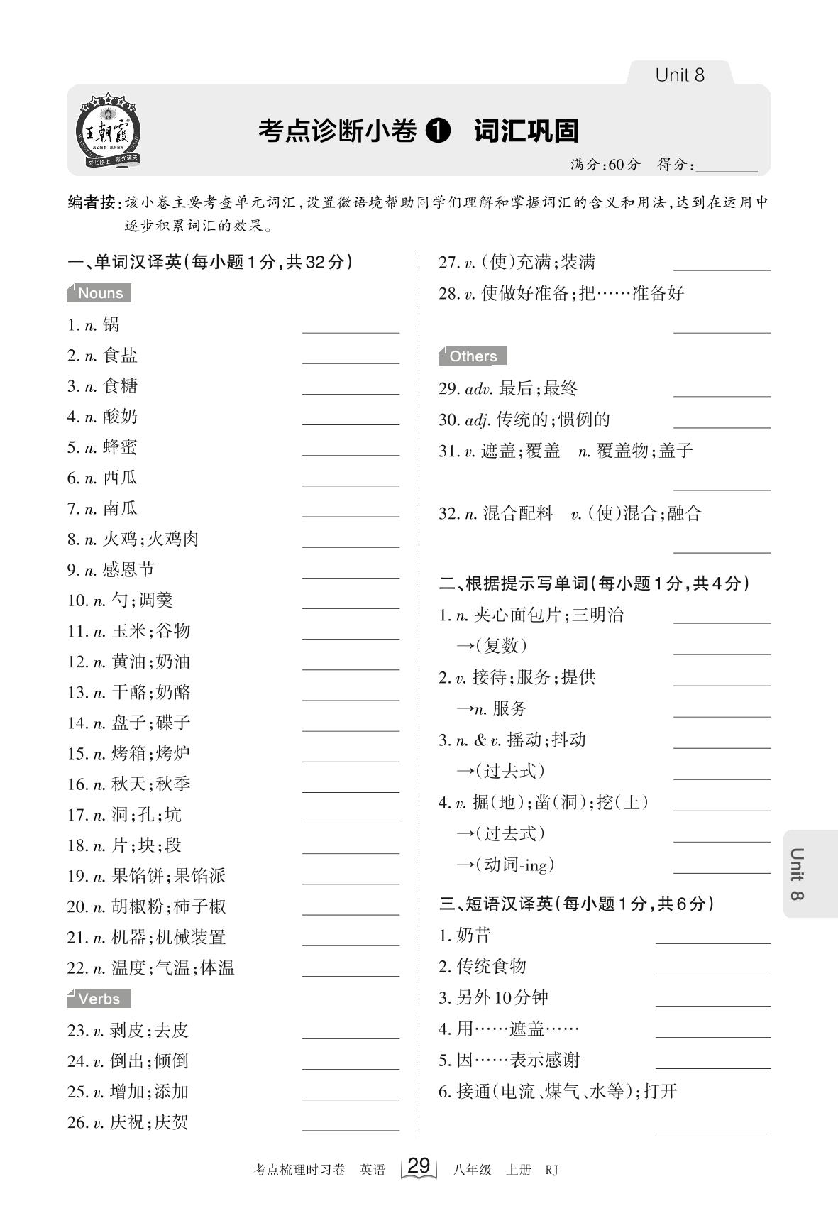 2023上册八年级英语人教版 Unit 8 考点诊断小卷1 词汇巩固_R230828152835482