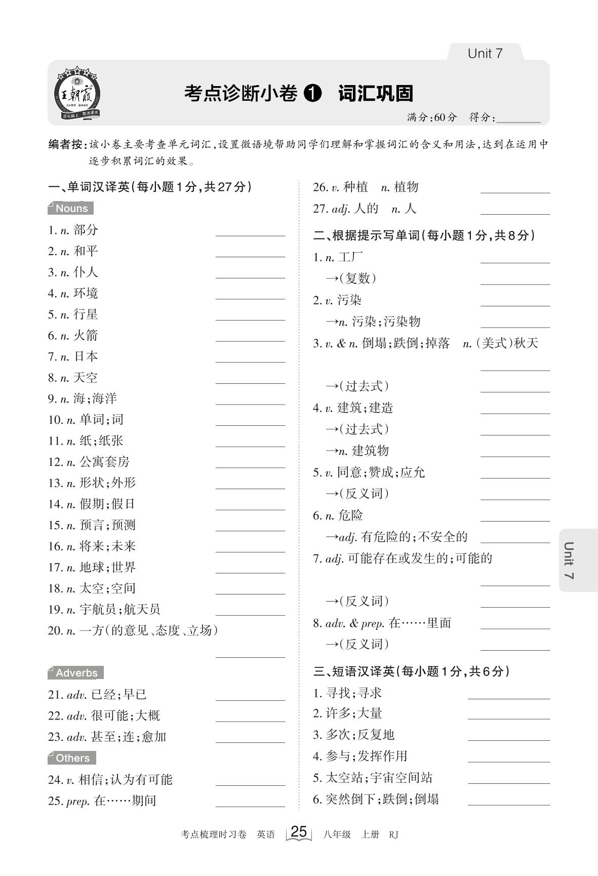 2023上册八年级英语人教版 Unit 7 考点诊断小卷1 词汇巩固_R230828152835782