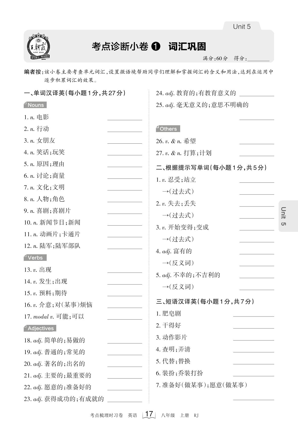 2023上册八年级英语人教版 Unit 5 考点诊断小卷1 词汇巩固_R230828152836091