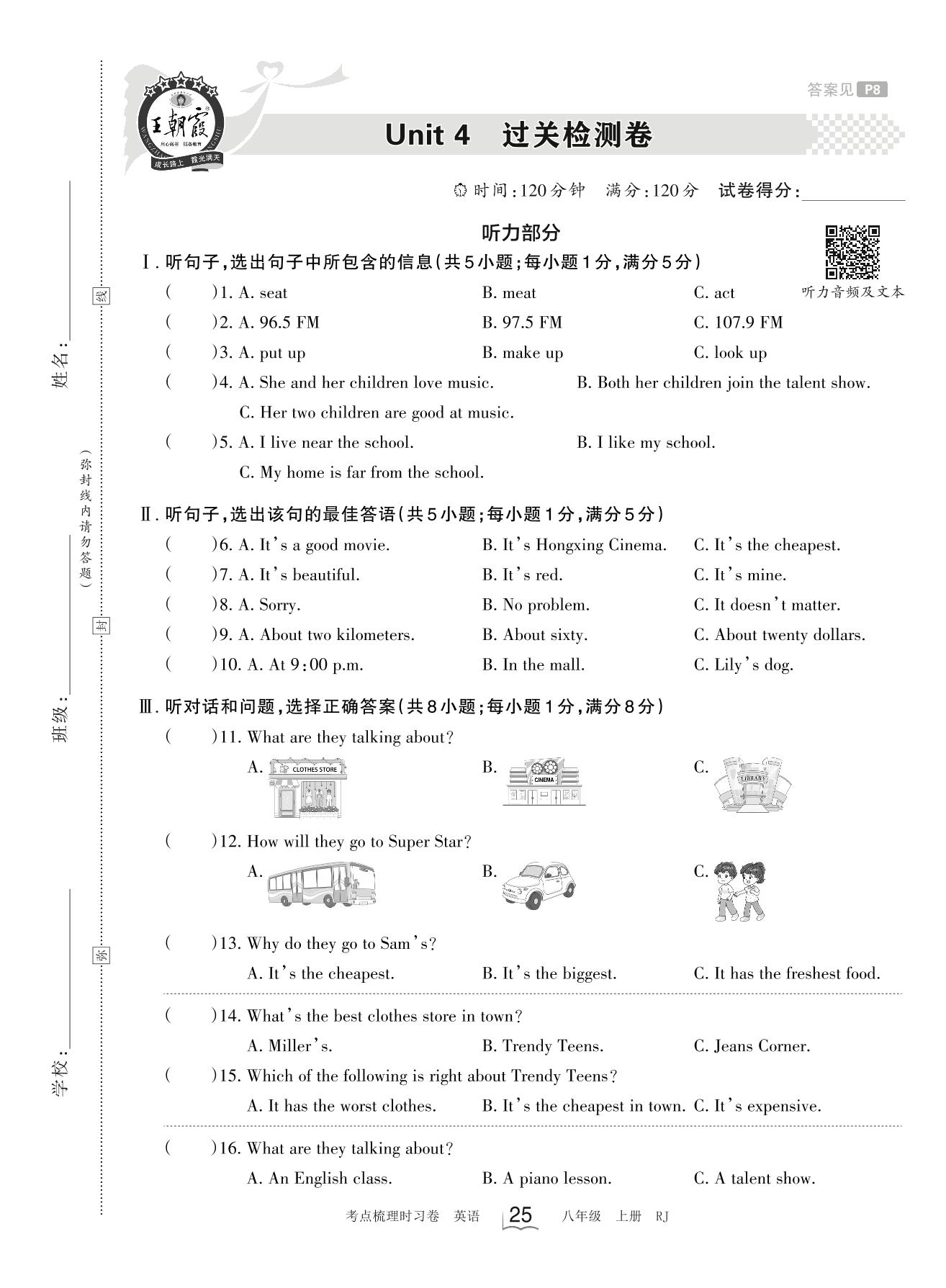2023上册八年级英语人教版 Unit 4 过关检测卷_R230828152837012