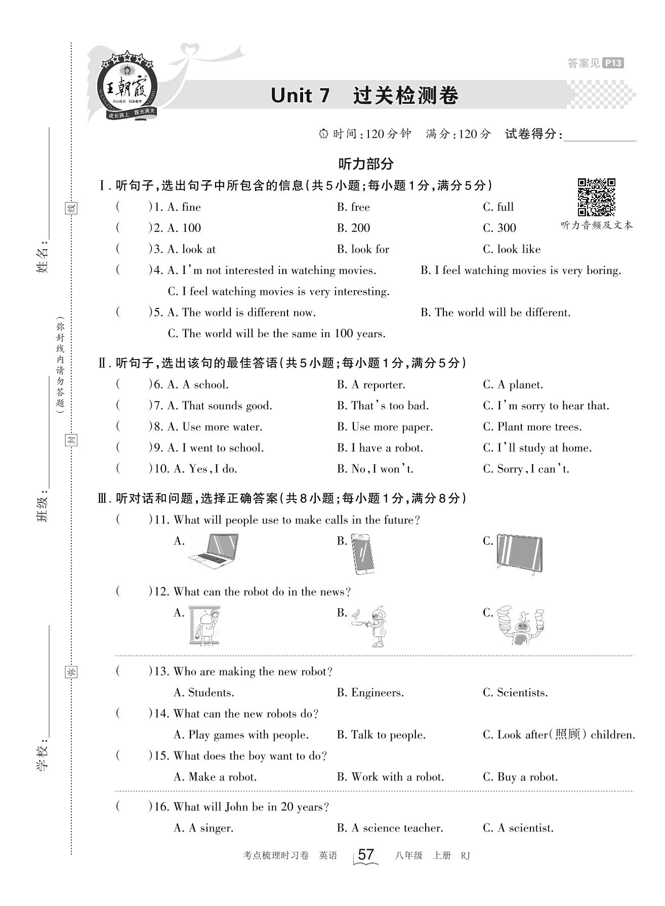 2023上册八年级英语人教版 Unit 7 过关检测卷_R230828152838379