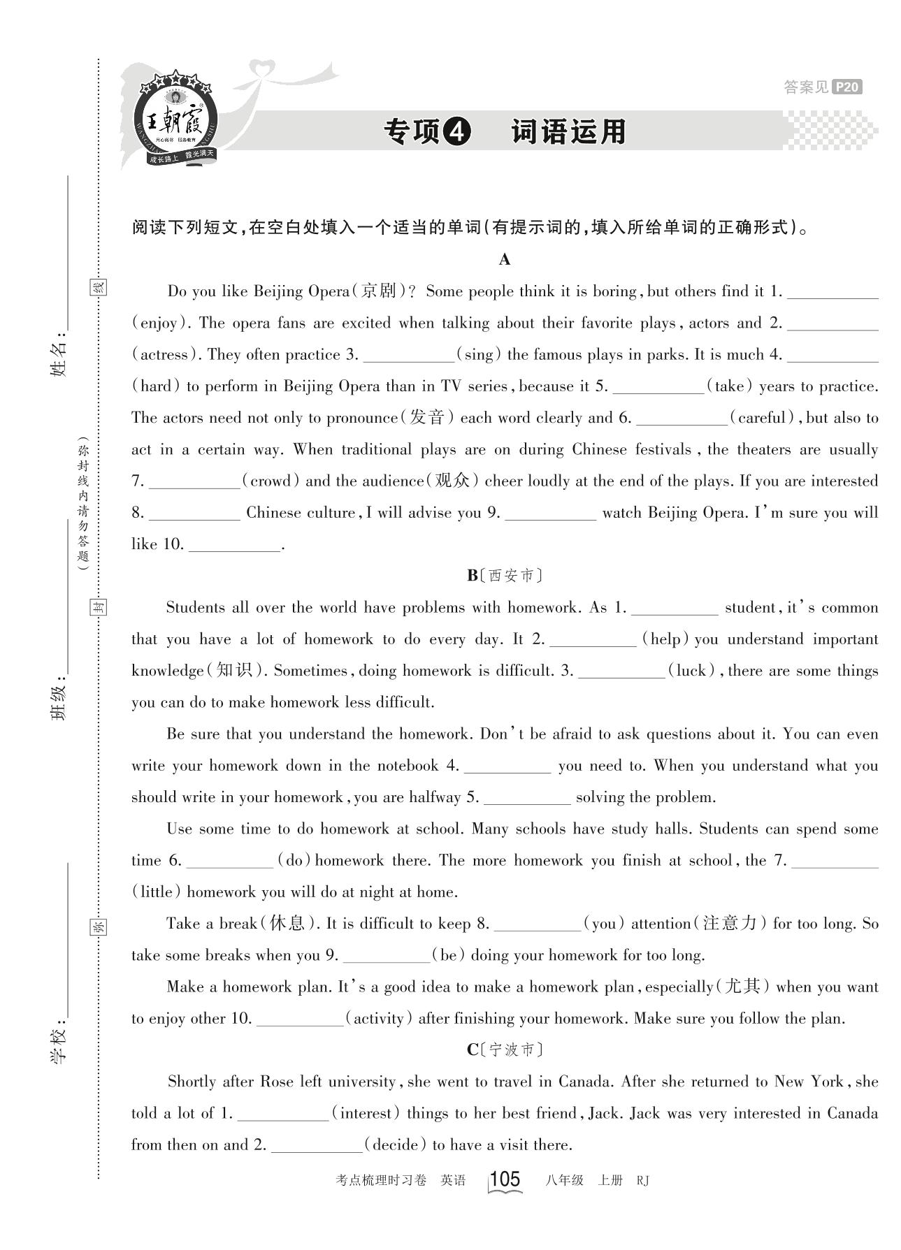 2023上册八年级英语人教版 专项4 词语运用