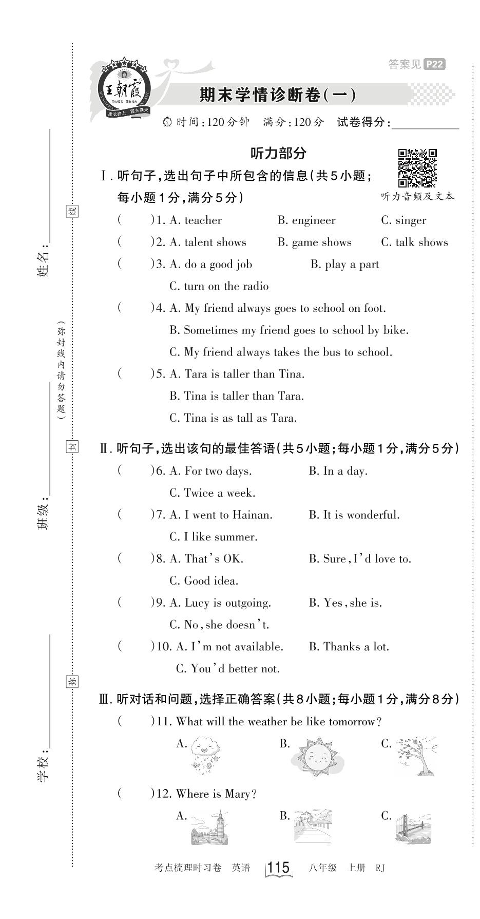 2023上册八年级英语人教版 期末学情诊断卷(一)_R230828152840591
