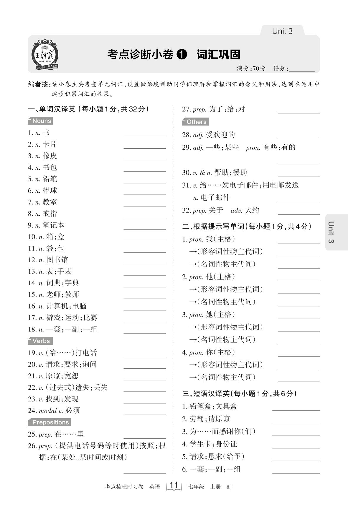 2023上册七年级英语人教版 Unit 3 考点诊断小卷1 词汇巩固_R230828160536918
