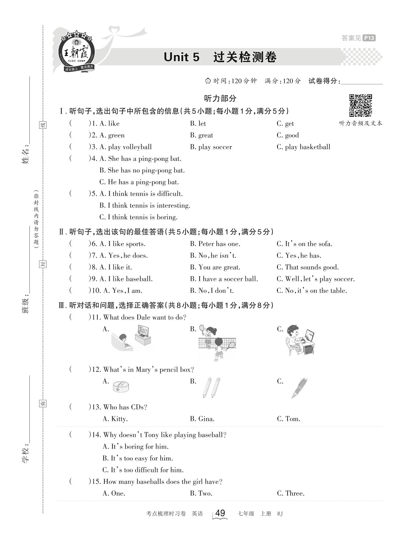 2023上册七年级英语人教版 Unit 5 过关检测卷_R230828160540267