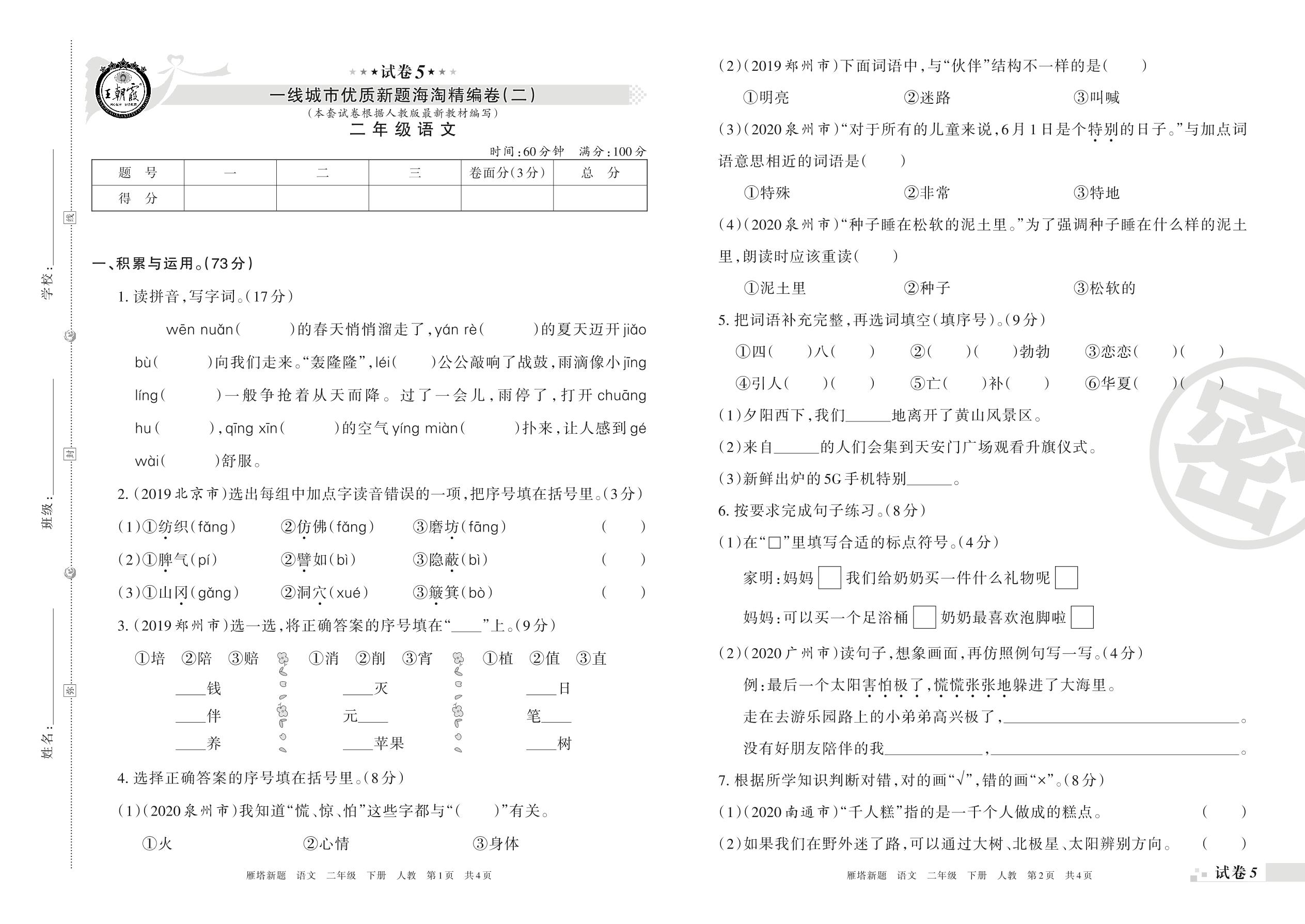 王朝霞海淘期末精编卷二年级下册语文(人教版)_R21080162930【5】