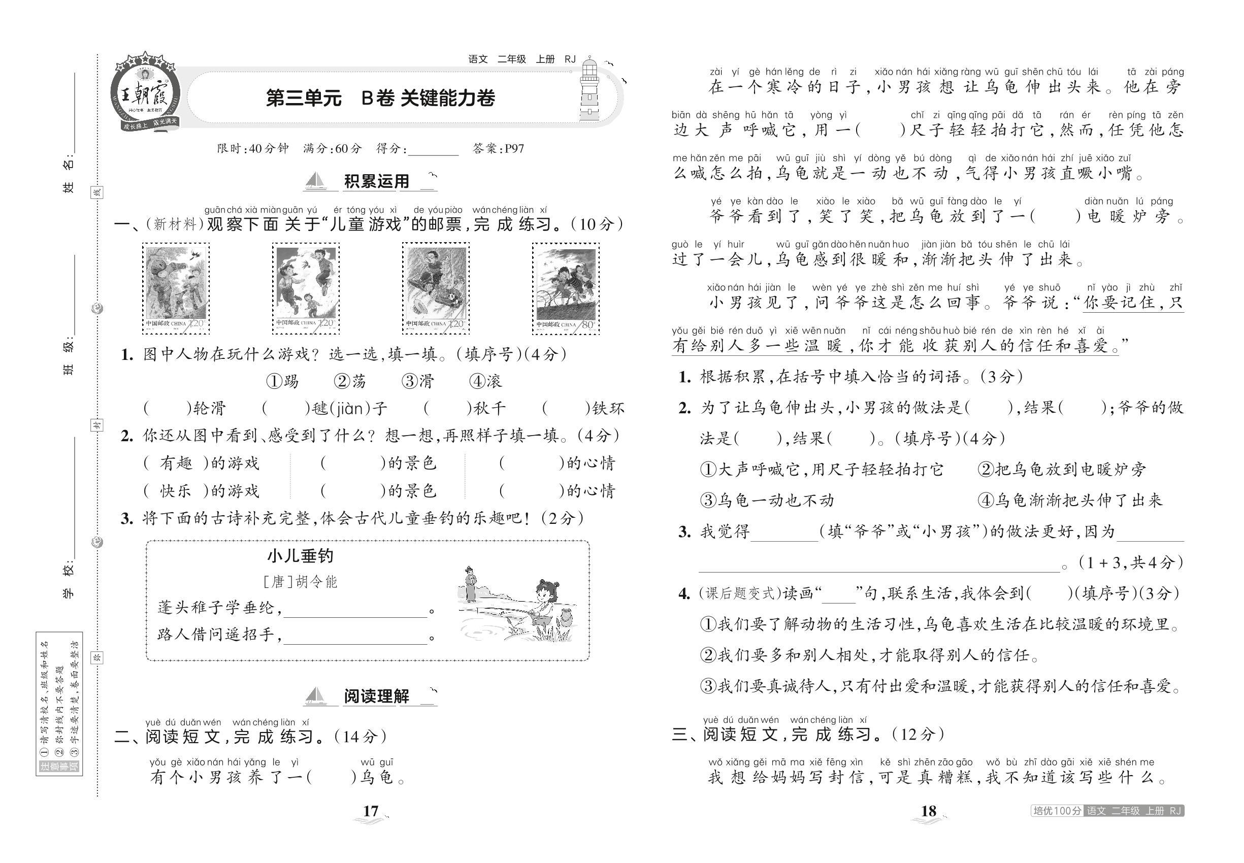 2023上册二年级语文人教版 第三单元 B卷 关键能力卷