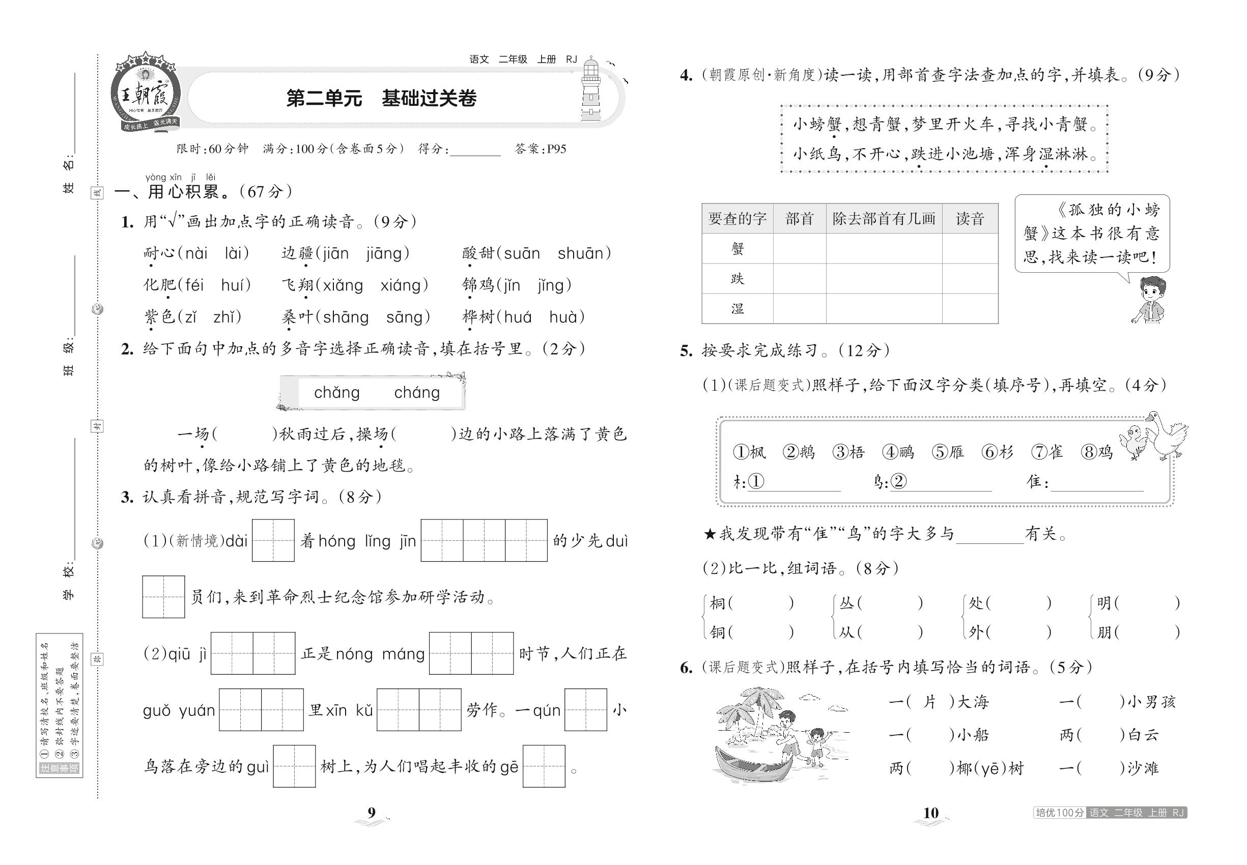 2023上册二年级语文人教版 第二单元 基础过关卷