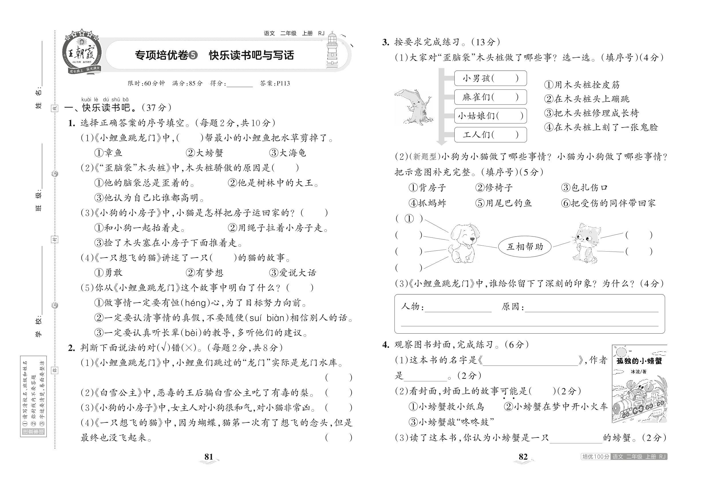 2023上册二年级语文人教版 专项培优卷5 快乐读书吧与写话